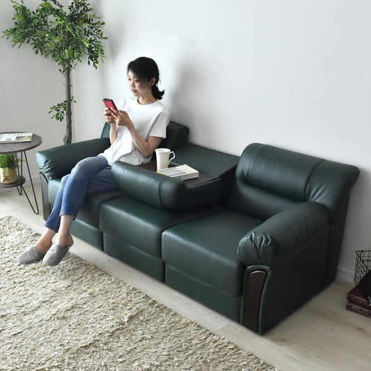 [幅130] ソファー 2人用 格納式フットレスト レザー カウチソファ | リオ