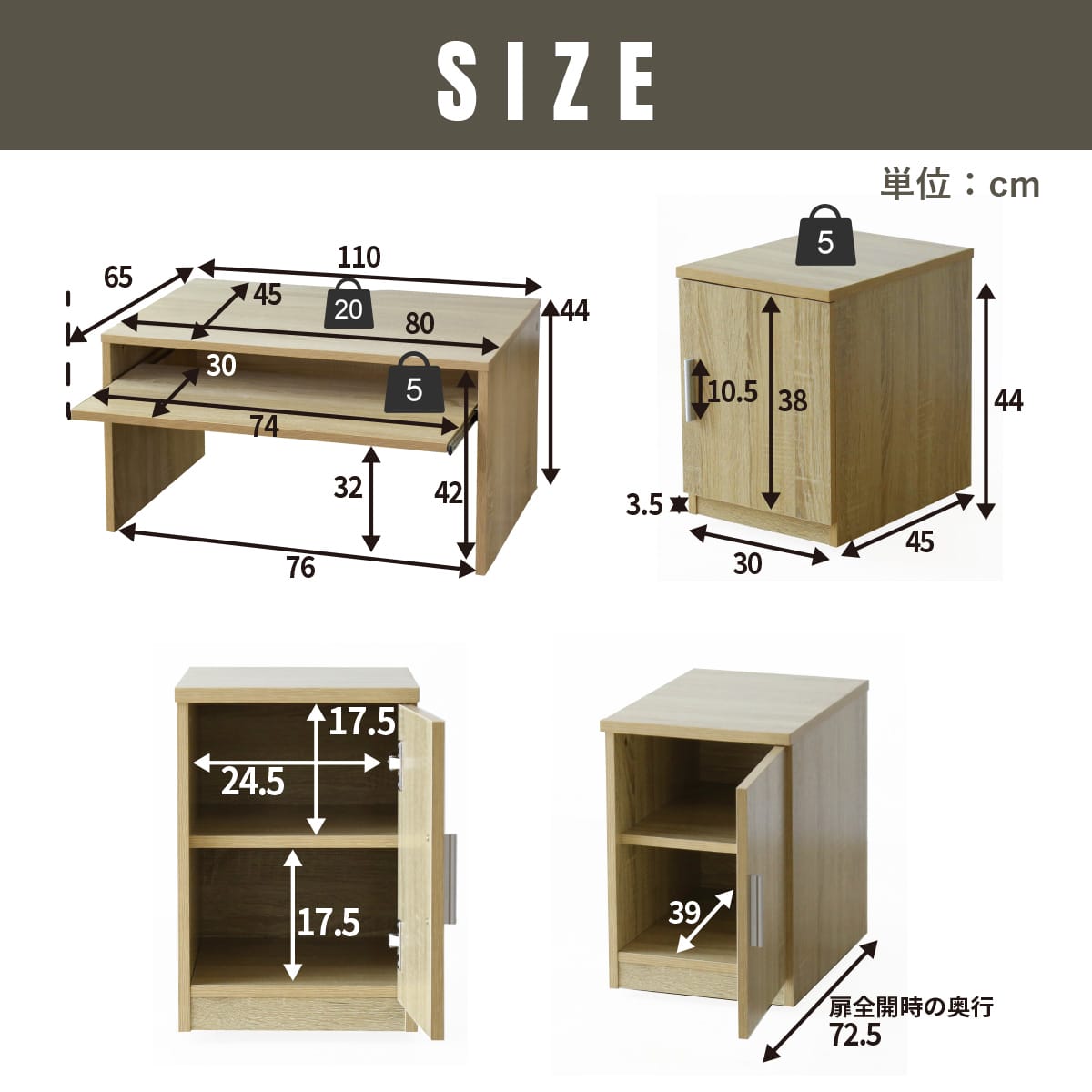 サイズ | 幅80×奥行45×高さ44(cm) 【チェスト】 幅30×奥行45×高さ44(cm) ※個体差により若干の差異あり |