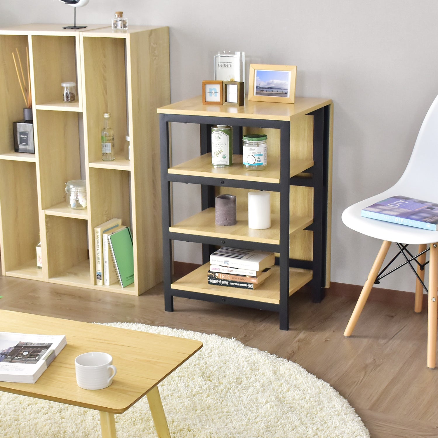 【組立かんたん】収納棚は左右どちらでも設置OK。天板をささえる支柱はキャスター付きです。