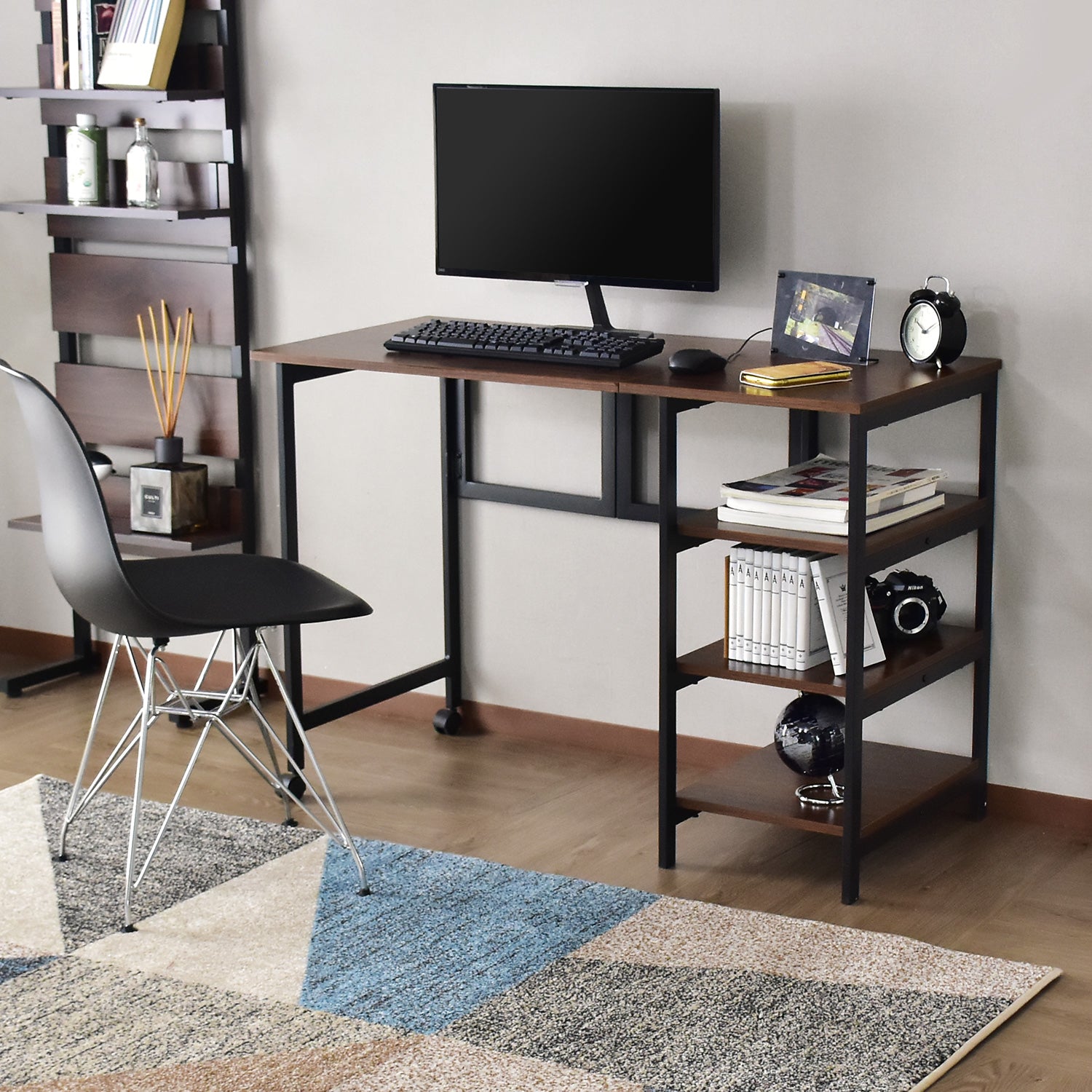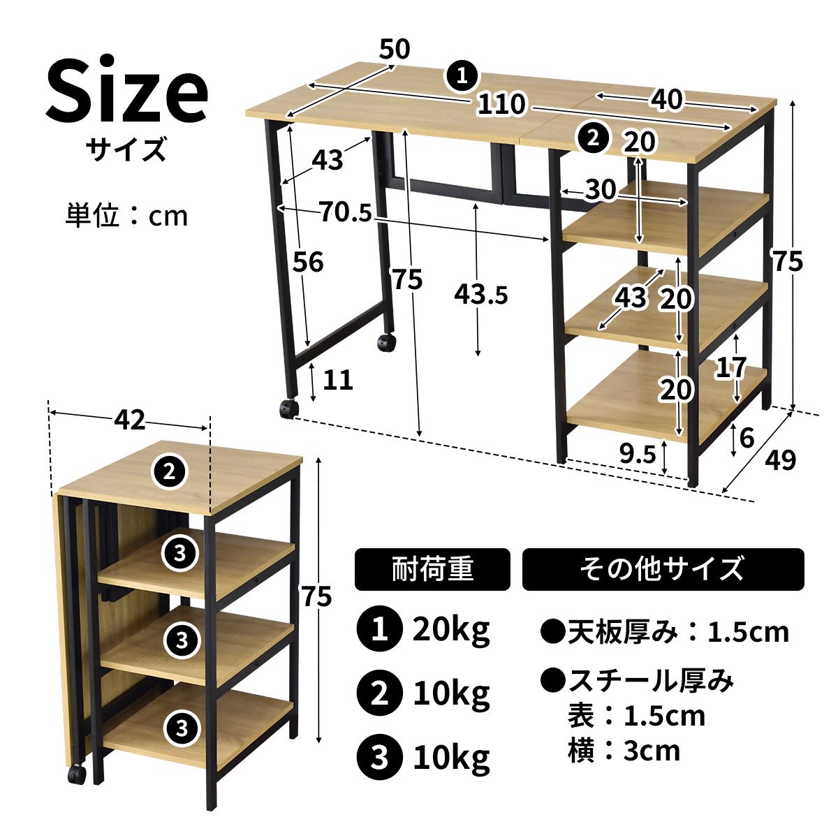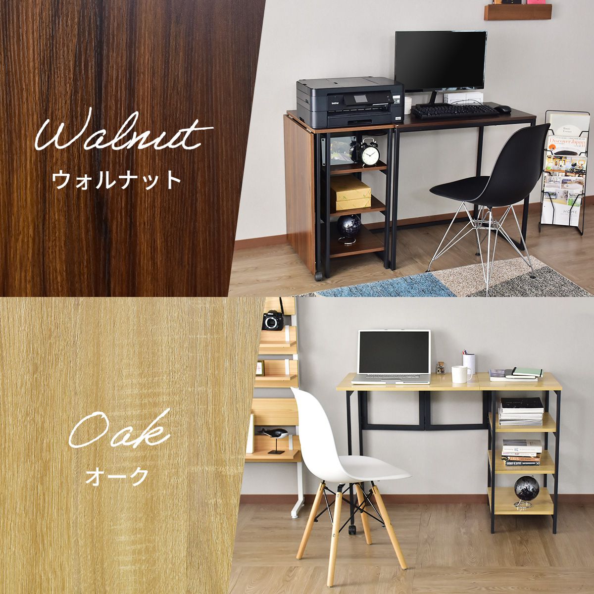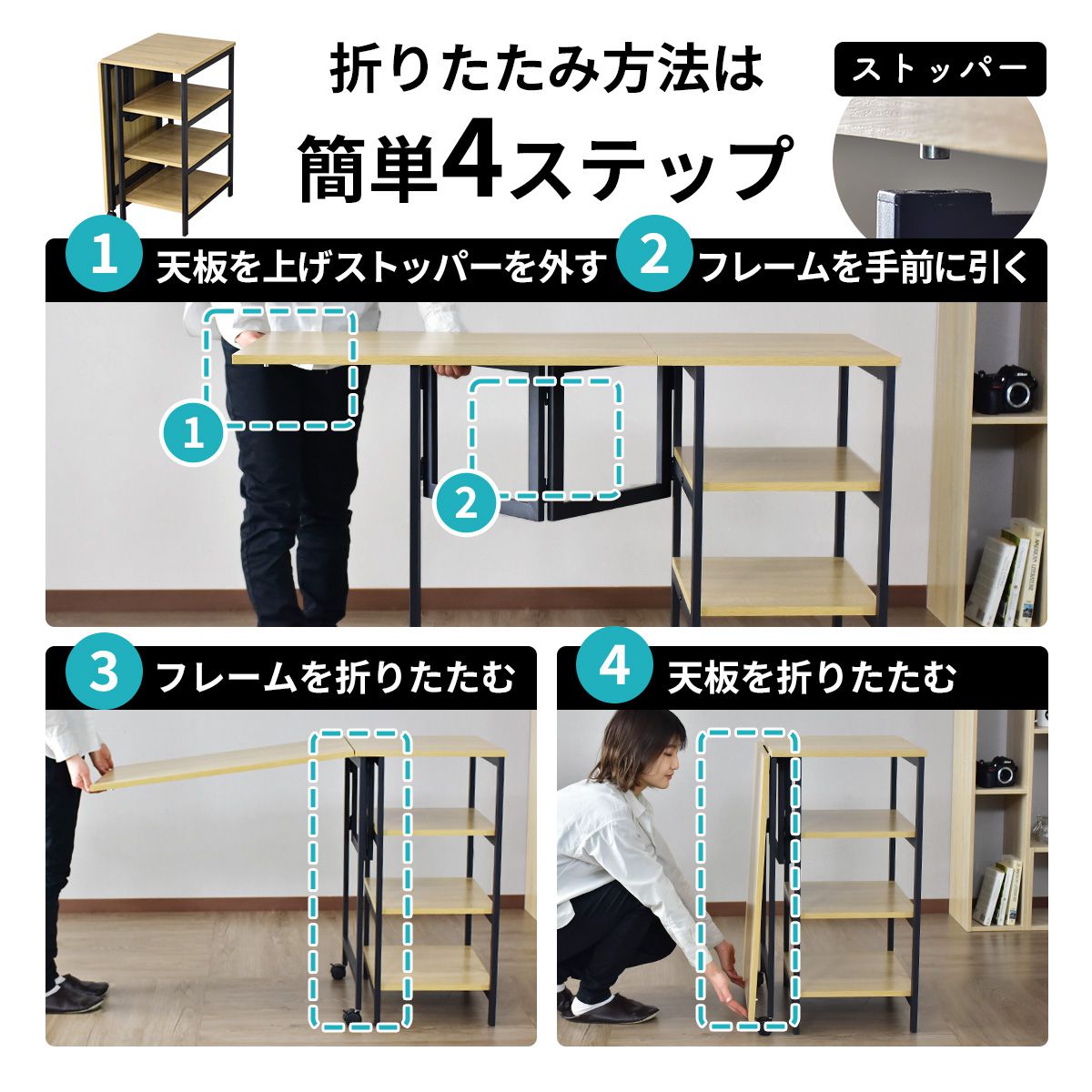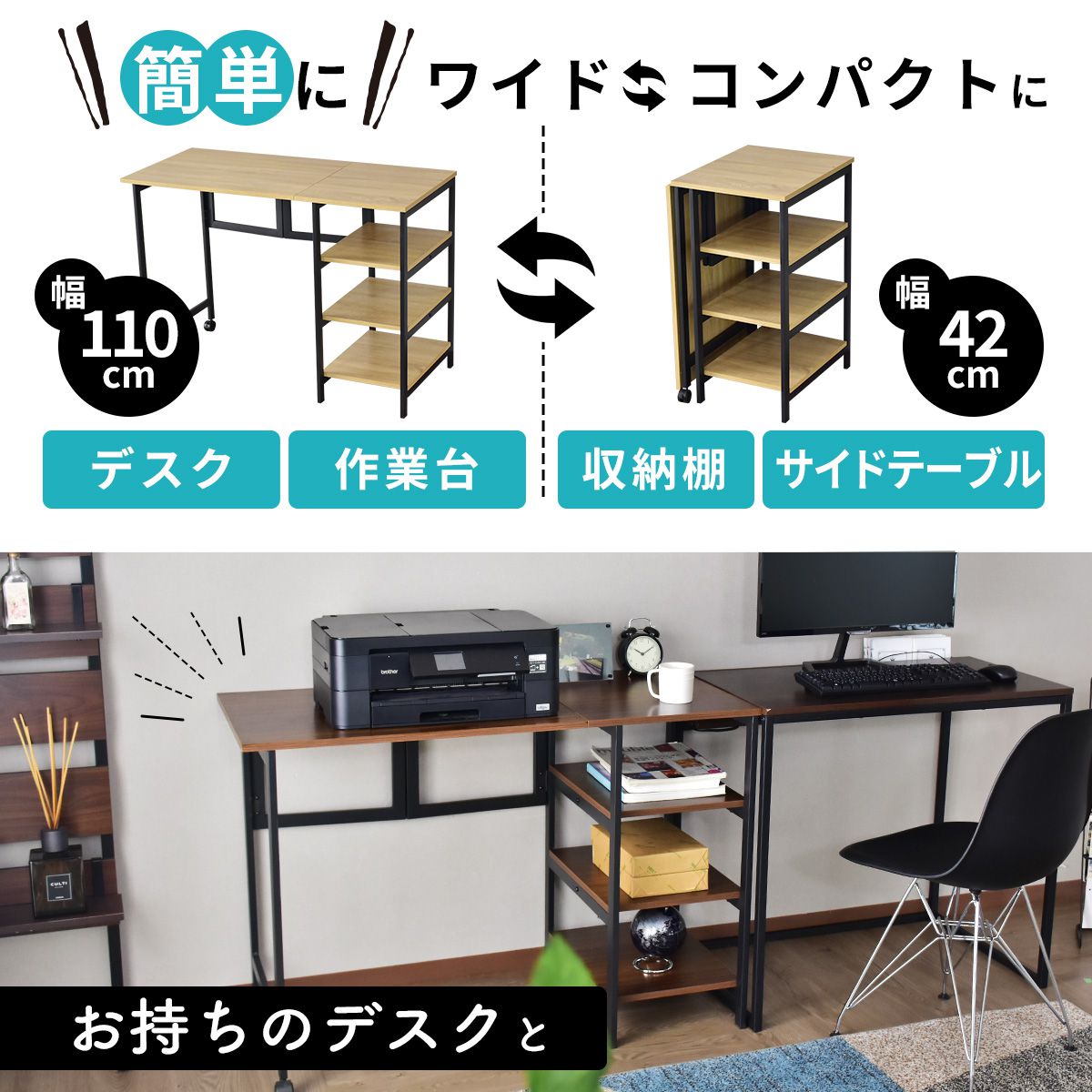 【折りたたみ機能】天板を起こせば幅110cmのデスクに。コンパクトにすると幅42cmの収納棚になります。