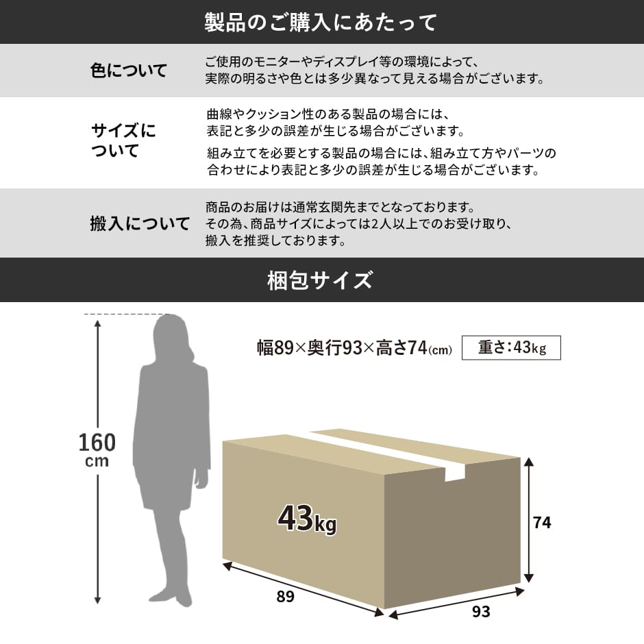 | サイズ | ソファ本体/約:幅174×奥行73.5〜93×高さ74 ※個体差により若干の差異あり |