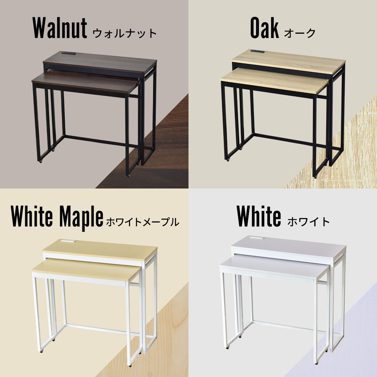 【カラーバリエーション】ブラックフレームにそれぞれオーク、ウォルナット、ホワイトフレームにホワイトメープルとホワイトの4色展開。