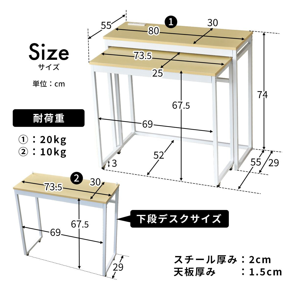 ■耐荷重 上段デスク:20kg 下段デスク:10kg