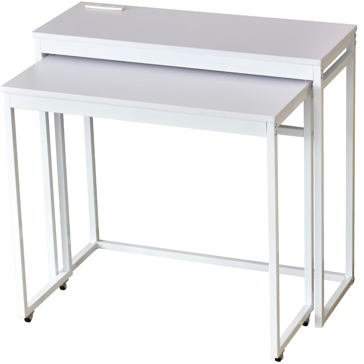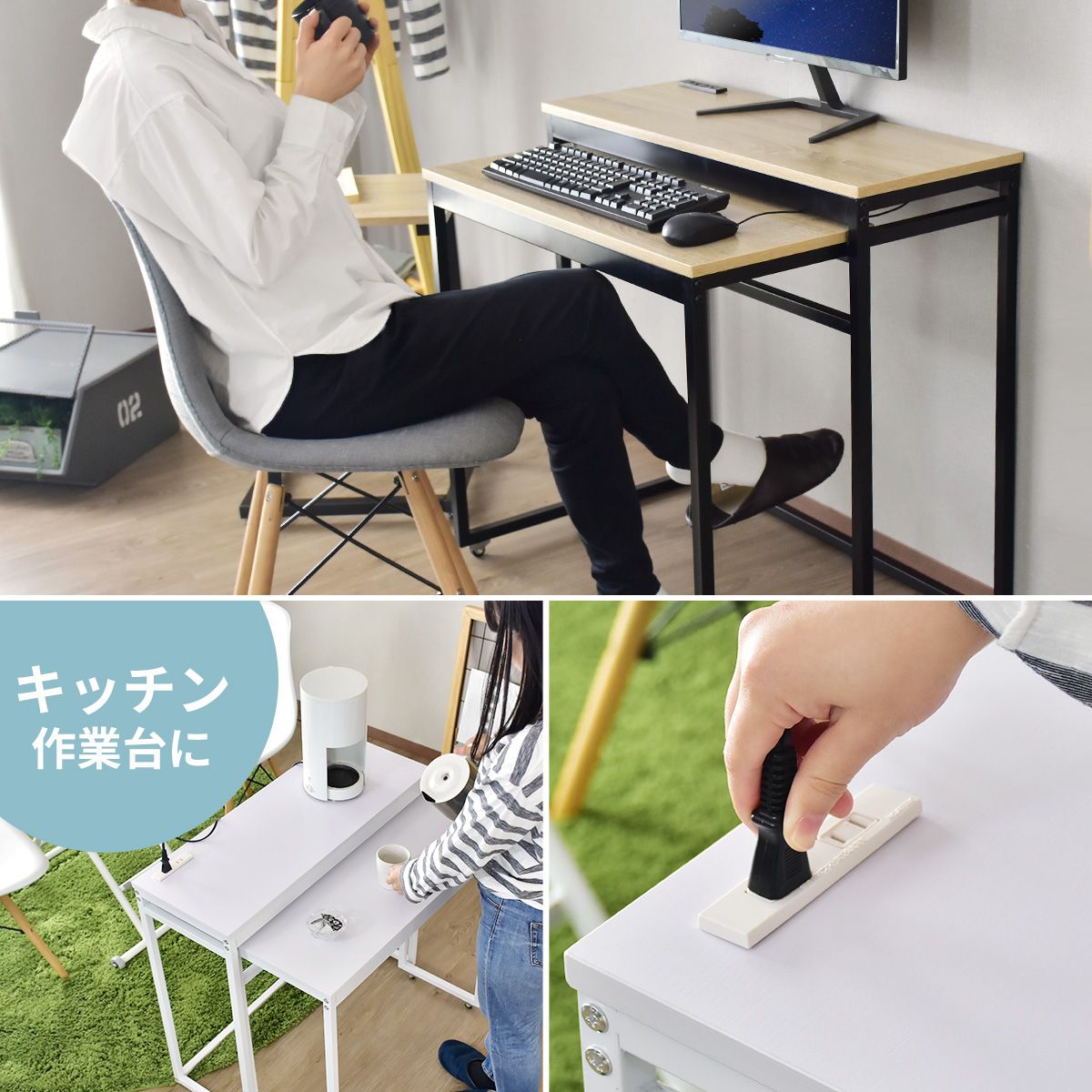 【コンパクト2段デスク】省スペースにもなる2段デスクです。1段目は前後に移動でき、コンパクトに収納できます。