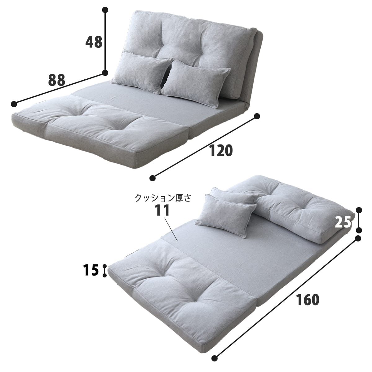 | サイズ | 【ソファ】幅98×奥行74×高さ56(cm) / 【カウチ】幅98×奥行120×高さ48(cm) 【ベッド】幅98×奥行202×高さ15(cm) ※個体差により若干の差異あり |