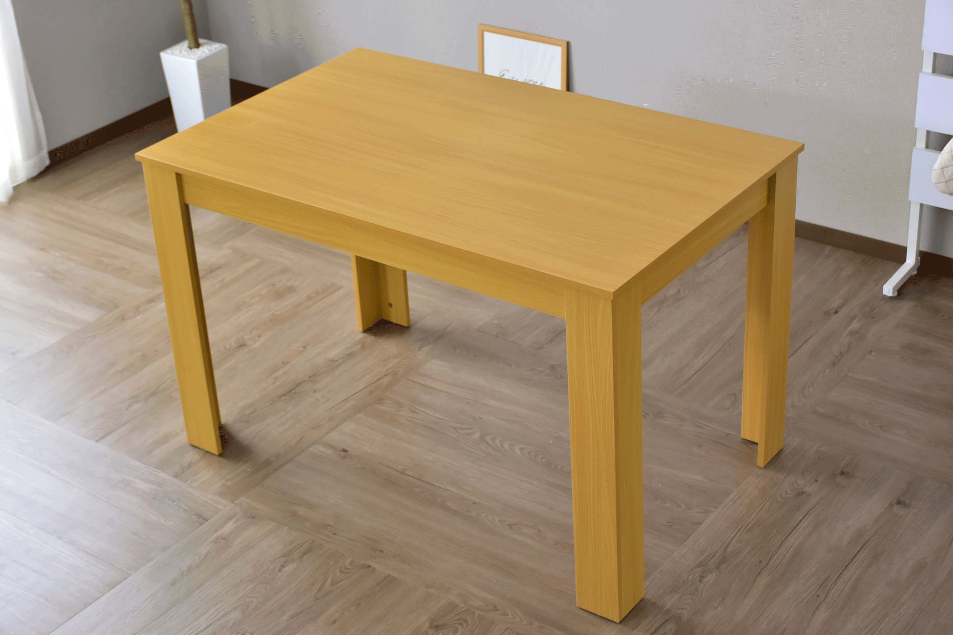 テーブルの表面にはラッカー加工を施しています。この加工により木の質感を残しながら表面がなめらかで柔らかい光沢感のある天板に仕上がっています。傷や汚れがつきにくくお手入れも簡単で、日々の生活にも寄り添ったダイニングテーブルです。