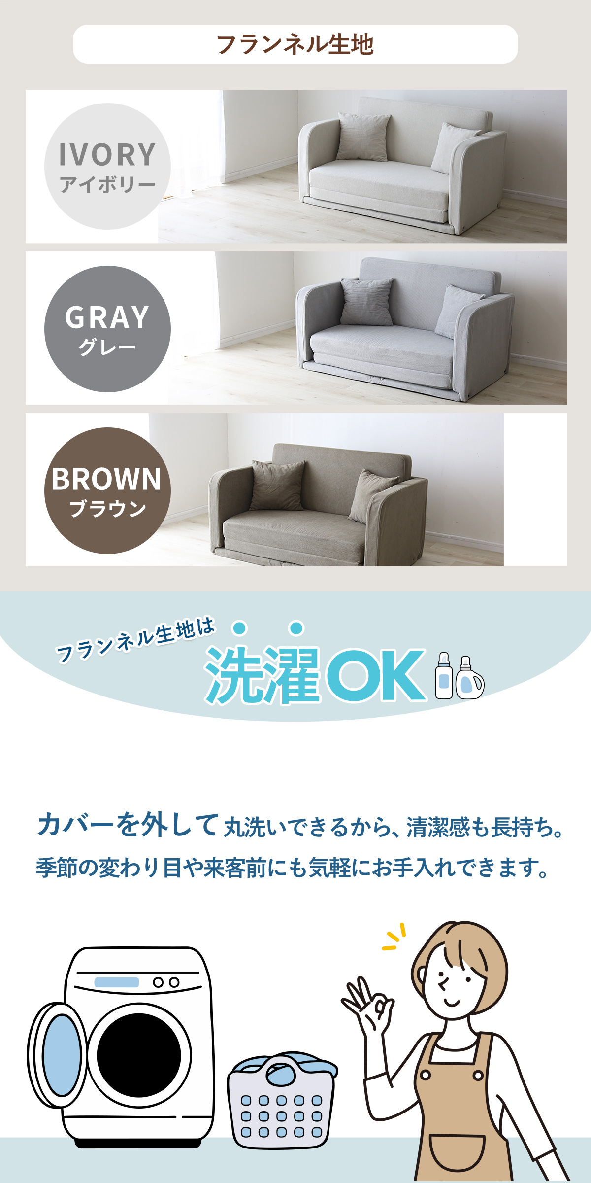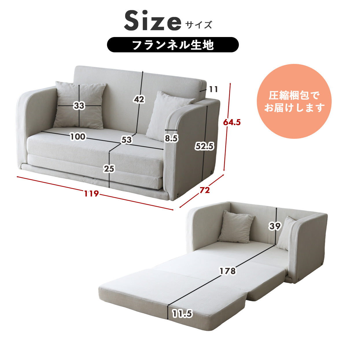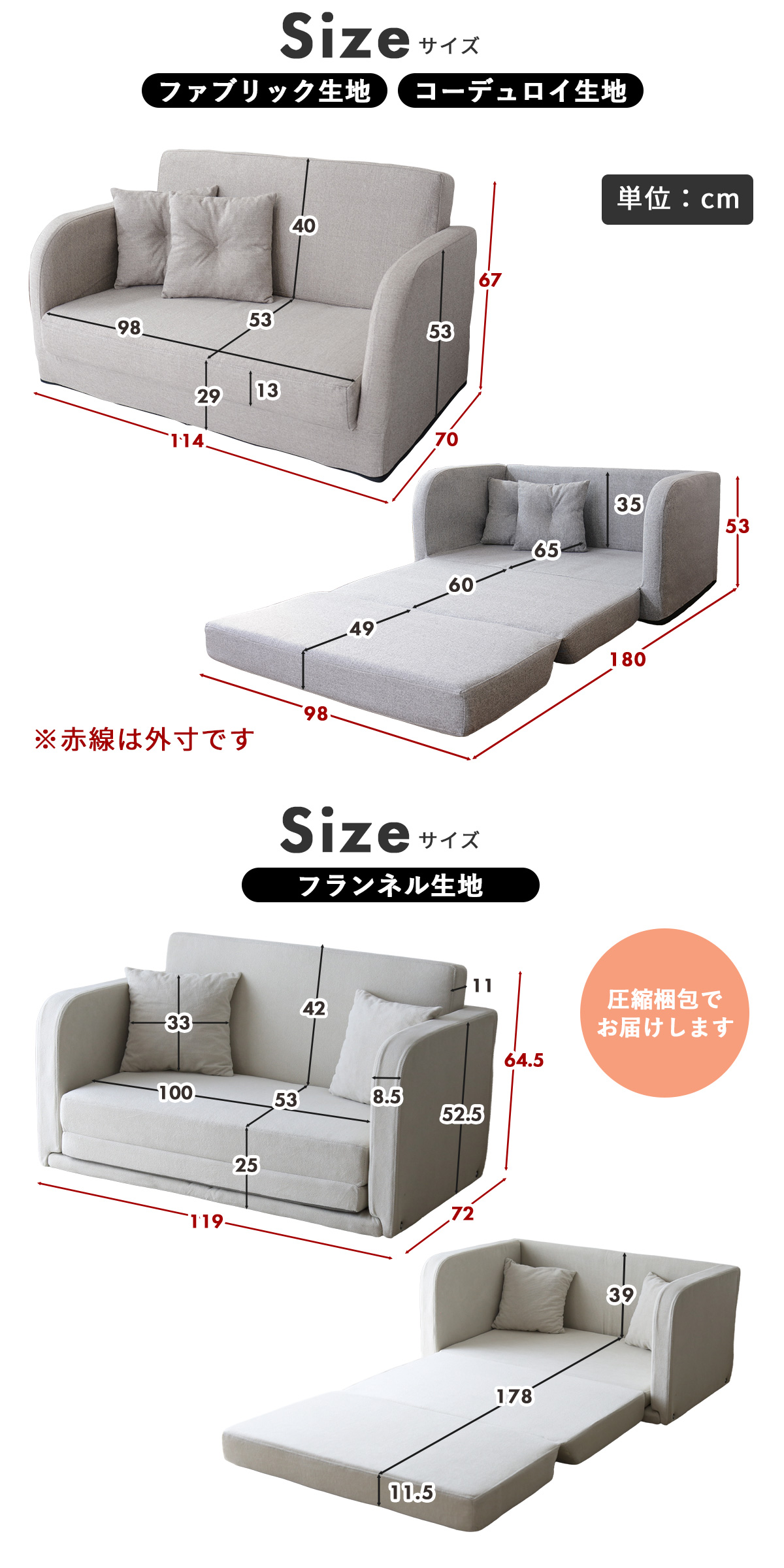 - 【欲張り2way】ソファとしてはもちろん、座面を広げればソファベッドとしても使える1台2役の欲張りソファです。うれしい同色クッション2個付き。