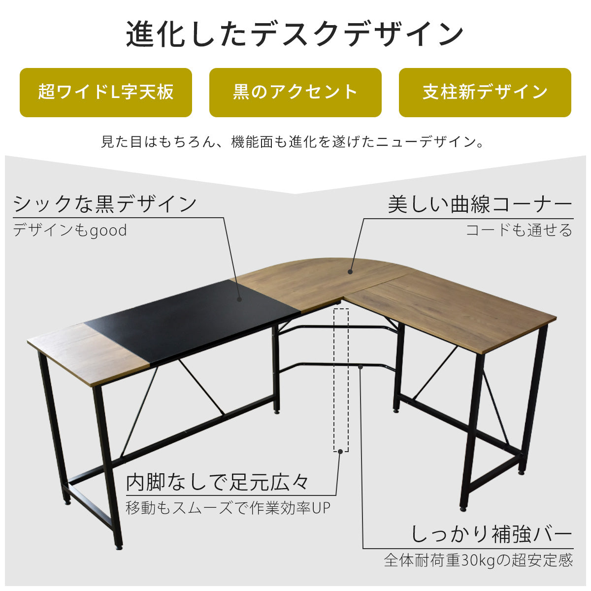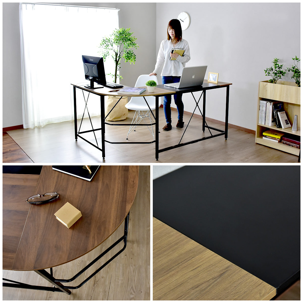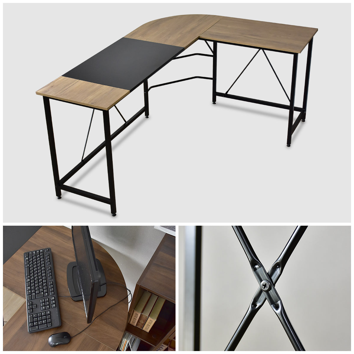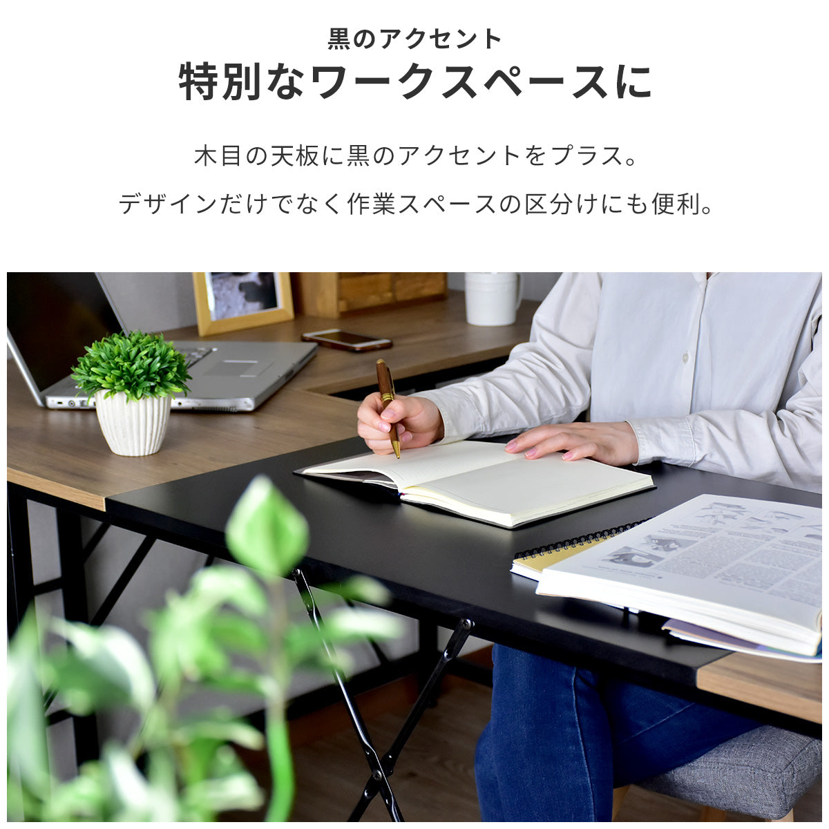 - 【黒のアクセント】木目の天板に黒のアクセントをプラス。デザインだけではなく作業スペースの区分けにも便利なコーナーデスク。