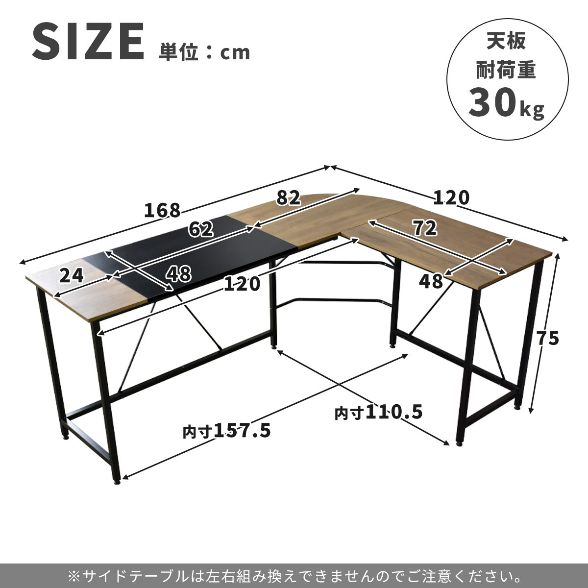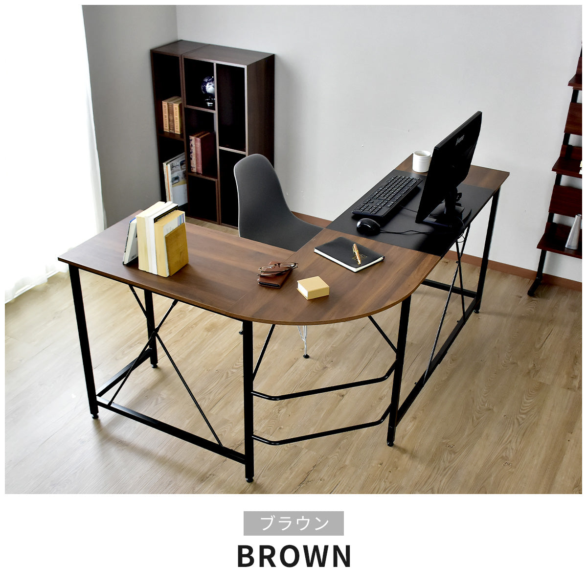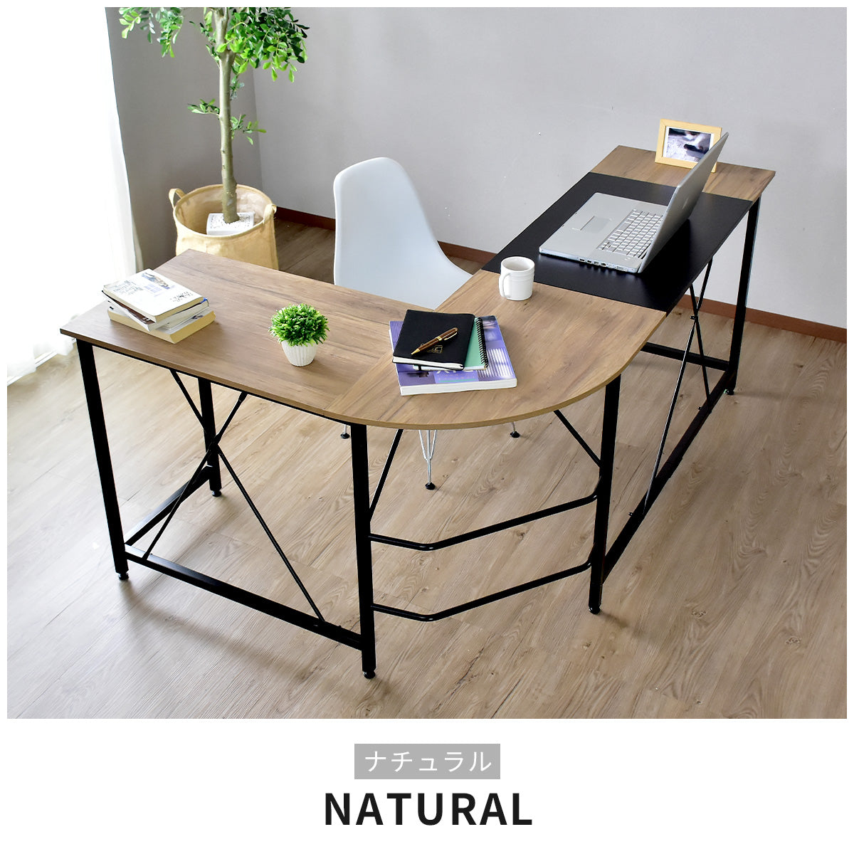 - 【黒のアクセント】木目の天板に黒のアクセントをプラス。デザインだけではなく作業スペースの区分けにも便利なコーナーデスク。