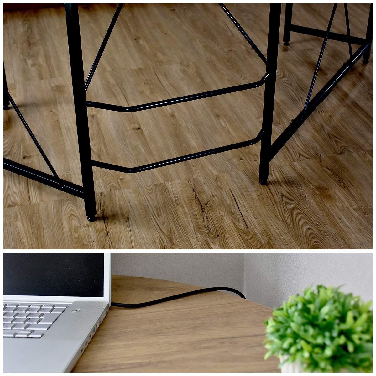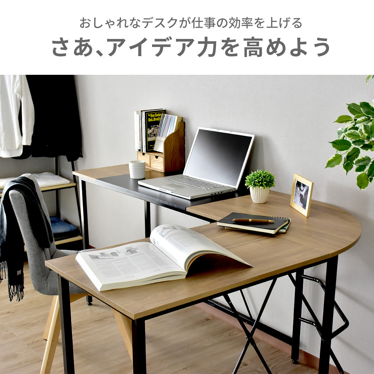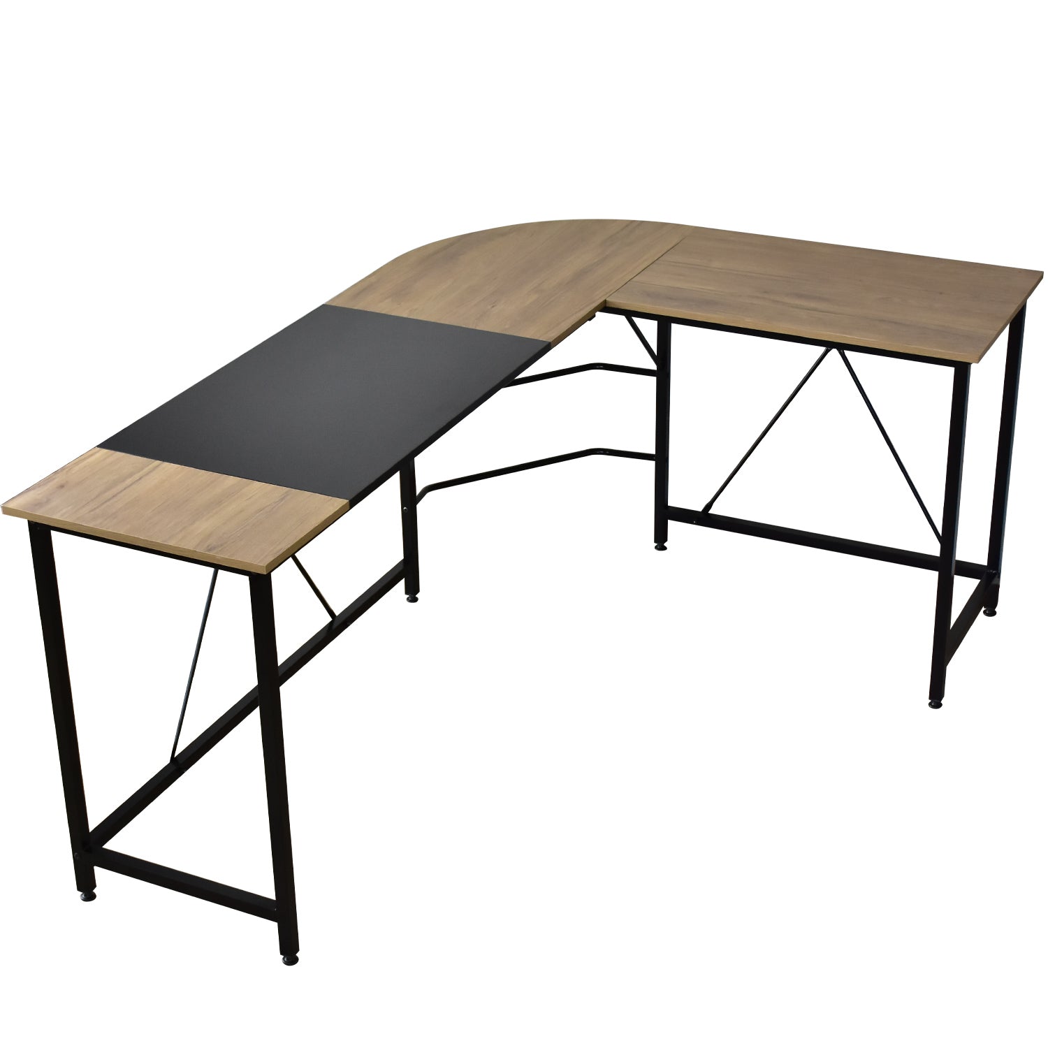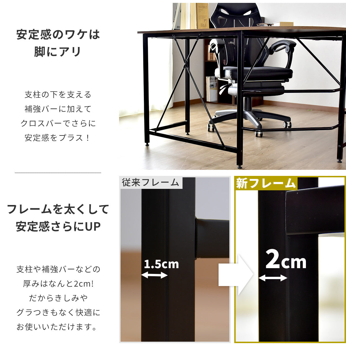 - 【黒のアクセント】木目の天板に黒のアクセントをプラス。デザインだけではなく作業スペースの区分けにも便利なコーナーデスク。