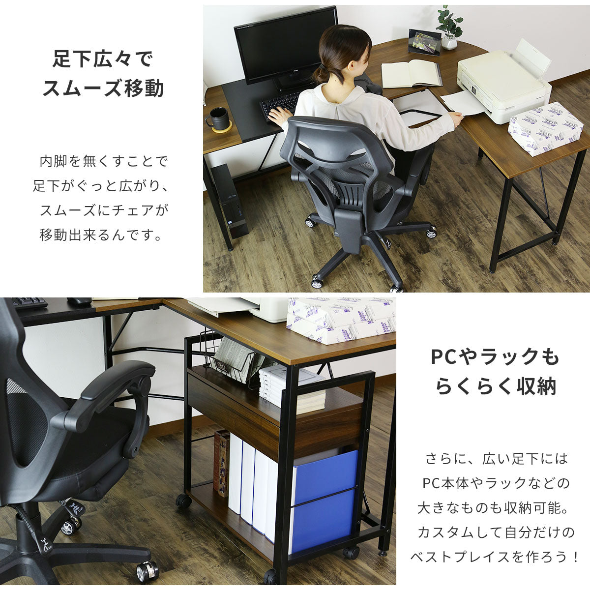 - 【超ワイドL字天板デスク】ディスプレイを置いてもゆとりのあるデスクサイズ。広々としたL字スペースで作業効率もアップ