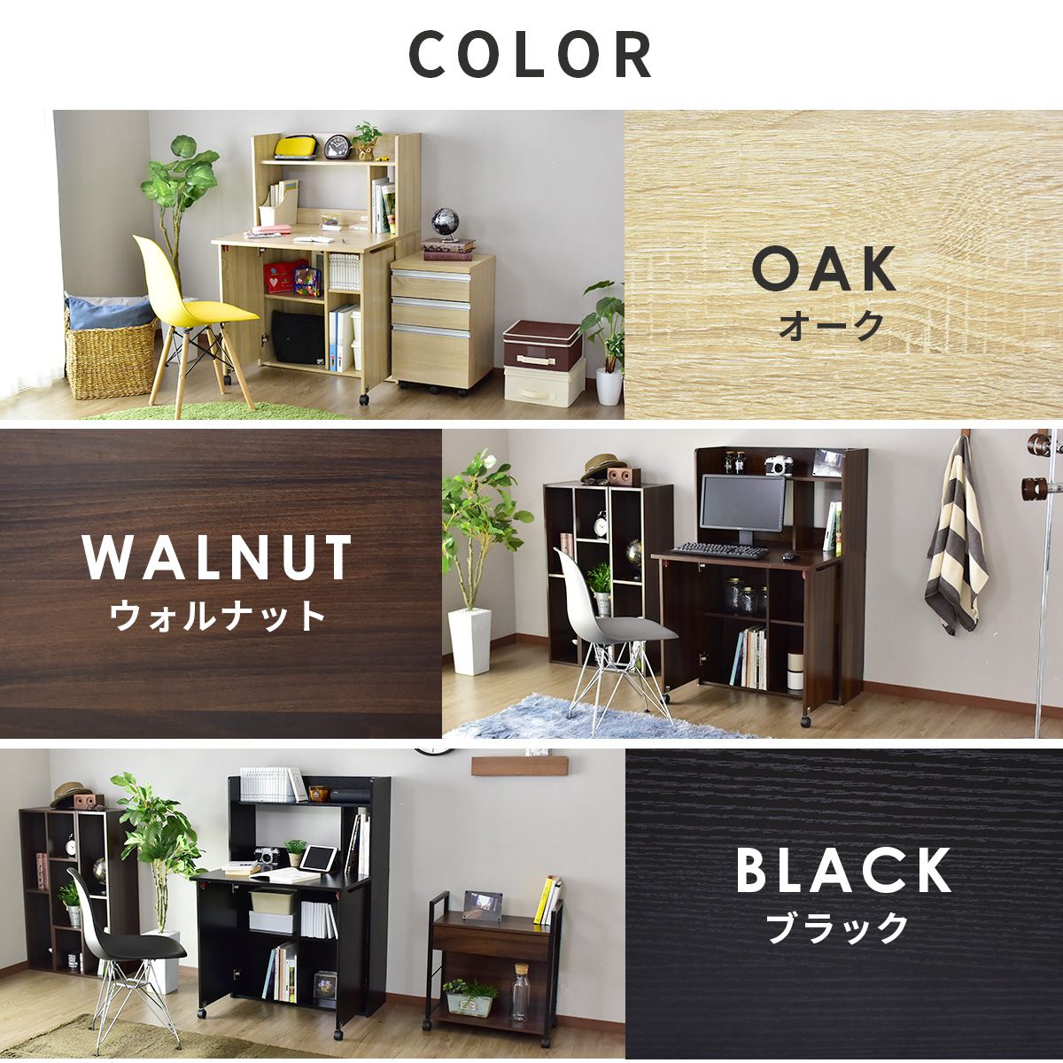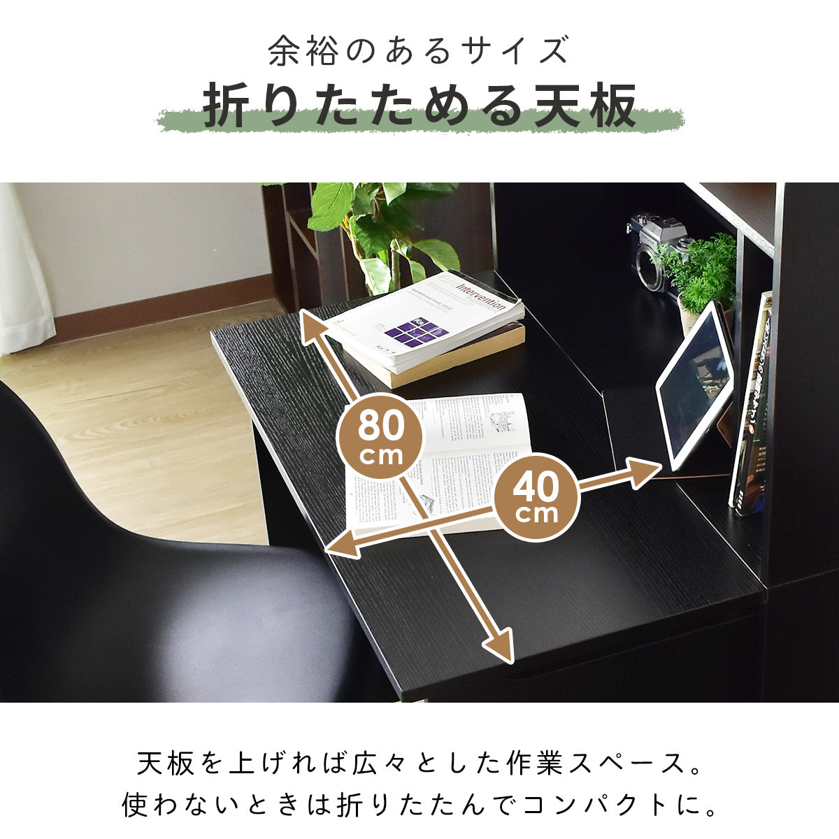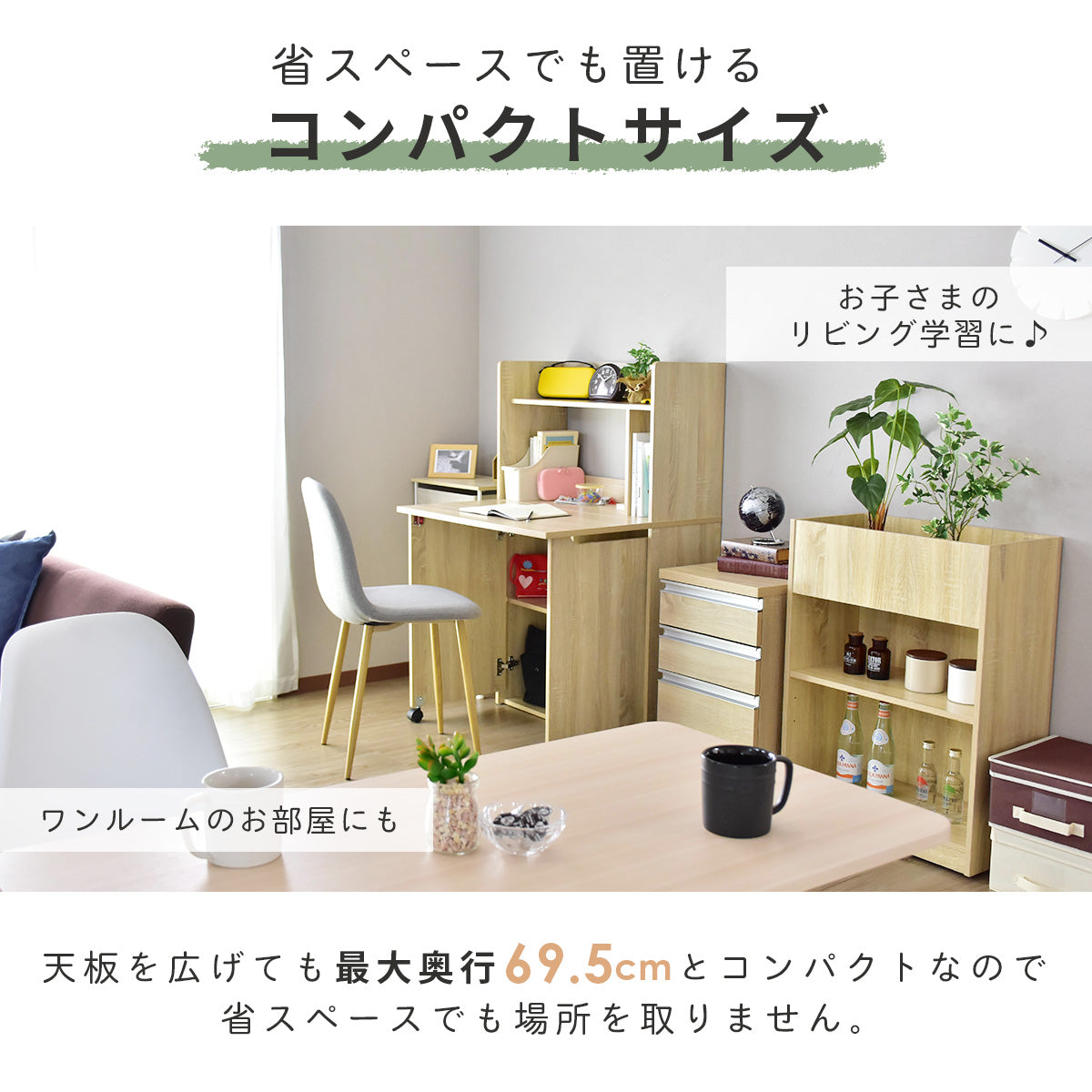 普段は壁面収納、イザという時にデスク、幅80cmでワンルーム・子供部屋でも使えるトランスフォームデスク。
