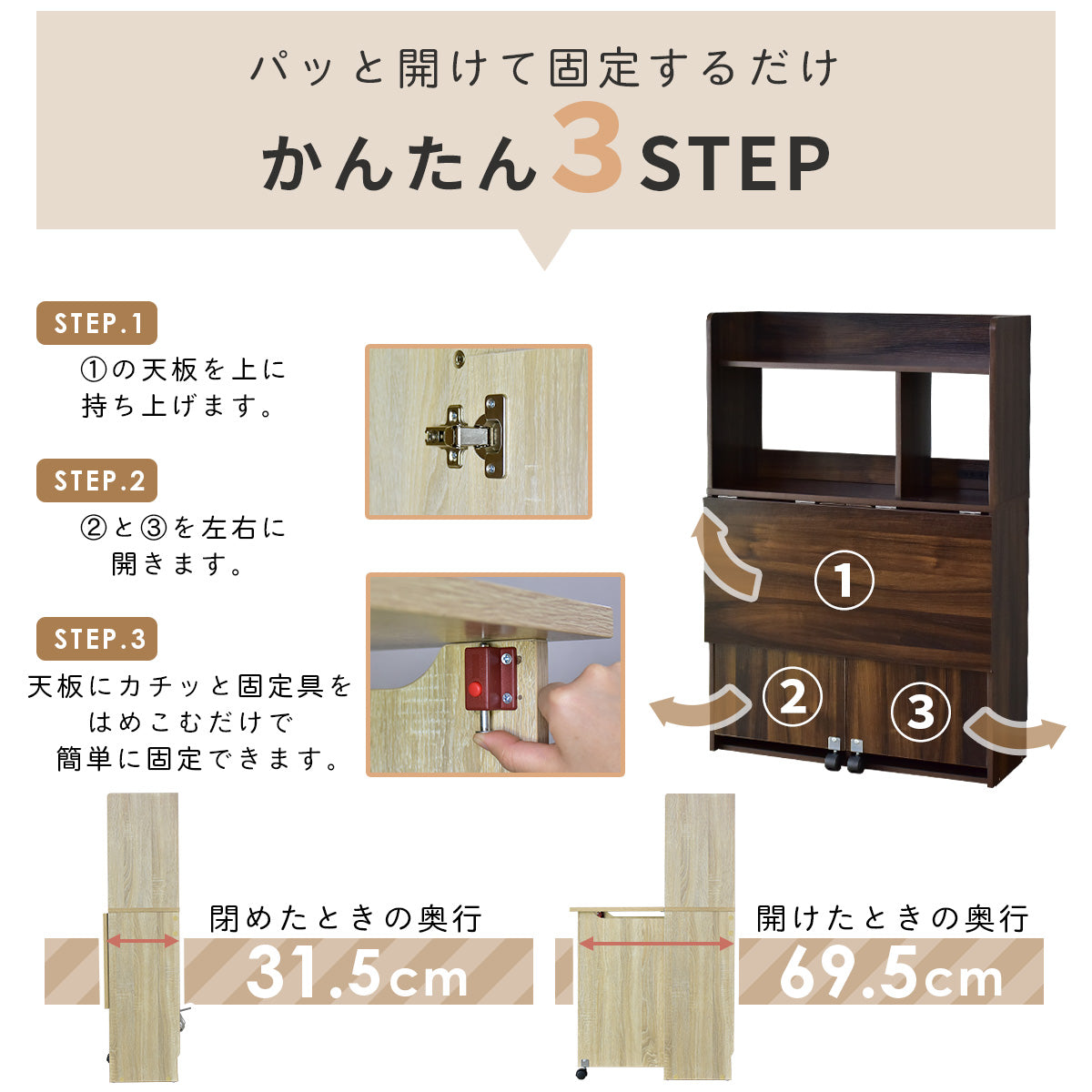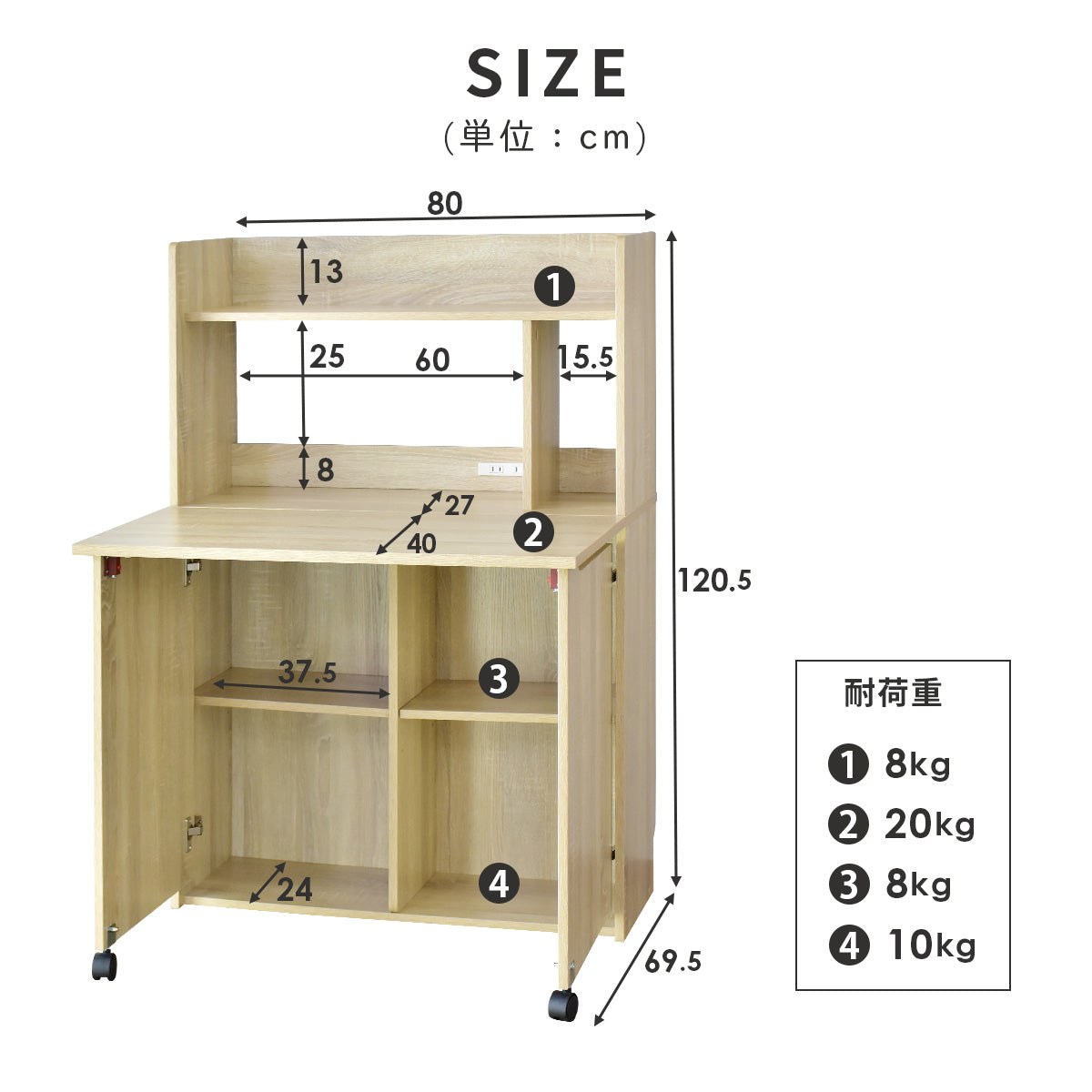 【本体】幅80×奥行31.5?69.5×高さ120.5(cm)