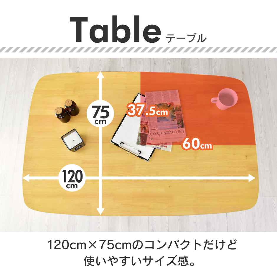 本テーブル:幅120×奥行75×高さ75(cm)