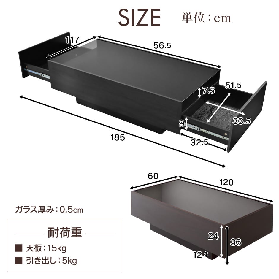 空間をおしゃれに演出するガラステーブル | 「キール」は、透明感のあるガラス天板とリアルな木目調デザインを組み合わせたセンターテーブルです。ガラス天板が持つ光の反射効果により、空間全体が明るく開放的な印象になり、リビングを一層おしゃれに演出します。幅120cmの長方形デザインは、ソファ前に置いても圧迫感が少なく、モダンで洗練された雰囲気をプラス。観葉植物やオブジェを置けばディスプレイテーブルとしても映え、日常の空間をギャラリーのように演出することができます。コーヒーテーブルやローテーブルとしての実用性を持ちながらも、インテリアの主役になる存在感を備えており、リビングの中心にふさわしい一台です。 |