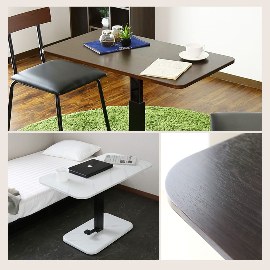 「グラン」は、日常のあらゆるシーンに対応する無段階昇降式テーブルです。使いやすい幅90cm×奥行き50cmのコンパクトなサイズ感で、ダイニングやリビングはもちろん、ワークスペースやベッドサイドにもぴったり。ペダルを軽く踏むだけで簡単に高さ調節が可能なので、食事、作業、リラックスのどんな場面でも最適な高さでご使用いただけます。さらに、お部屋のインテリアに合わせやすい選べる5カラーと、温かみのある木目調や高級感のある大理石調やコンクリート調の天板デザインが特徴。見た目の美しさと実用性を兼ね備えた、使い勝手抜群の一台です。