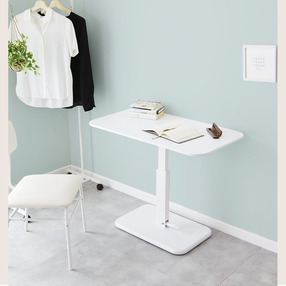 高さを調整するのに力はいりません。ペダルを踏むだけでスムーズに動作するガス圧式機能を採用しています。これにより、食事をするときは低め、作業をするときは高めなど、用途に応じてワンタッチで高さを切り替えることができます。作業を中断することなく、スムーズに調整できる点が魅力です。