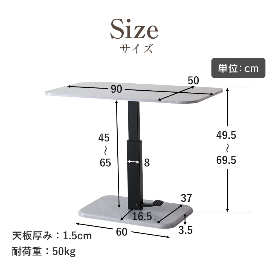 サイズ | 本体:約幅90×奥行50×高さ49.5〜69.5(cm) |