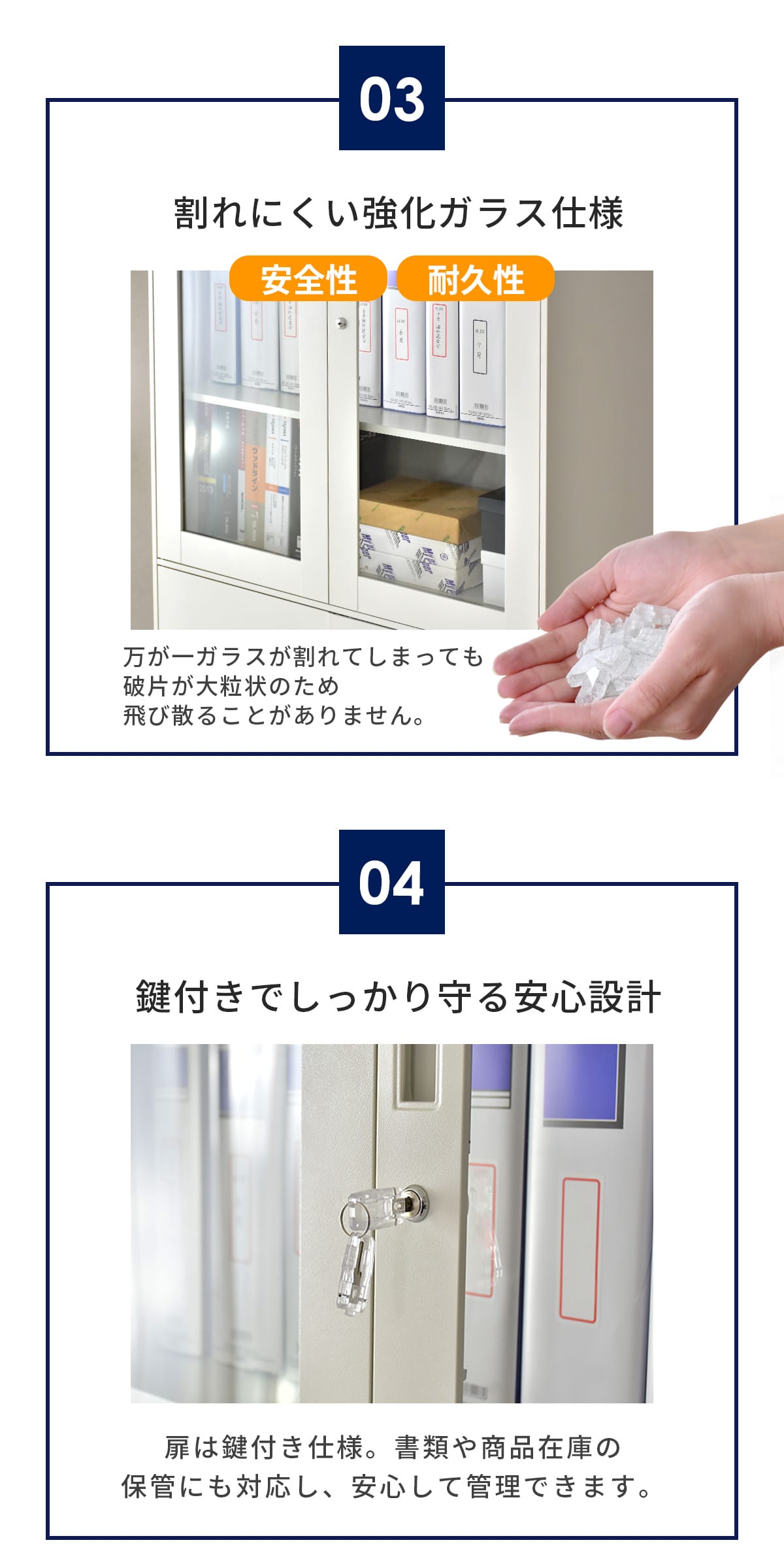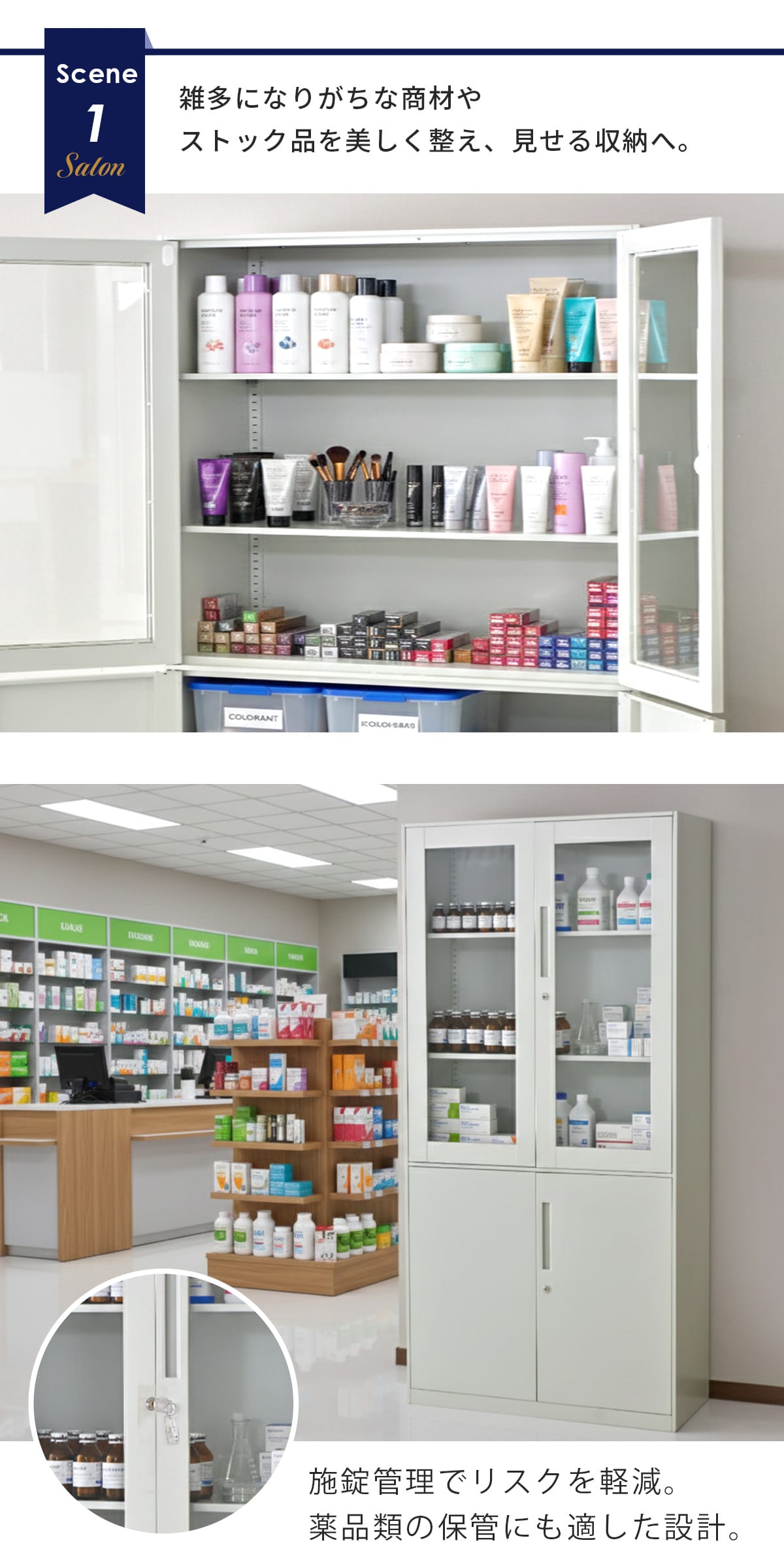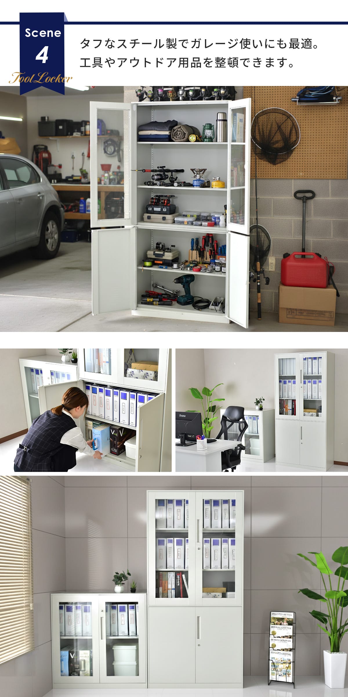 オフィス収納はもちろん、サロンや病院、学校、公共施設など幅広いシーンで活躍。主張しすぎないシンプルデザインで空間に自然に調和します。備品管理や共有スペースの整理整頓にも最適。鍵付き仕様で重要書類や備品の管理も安心です。