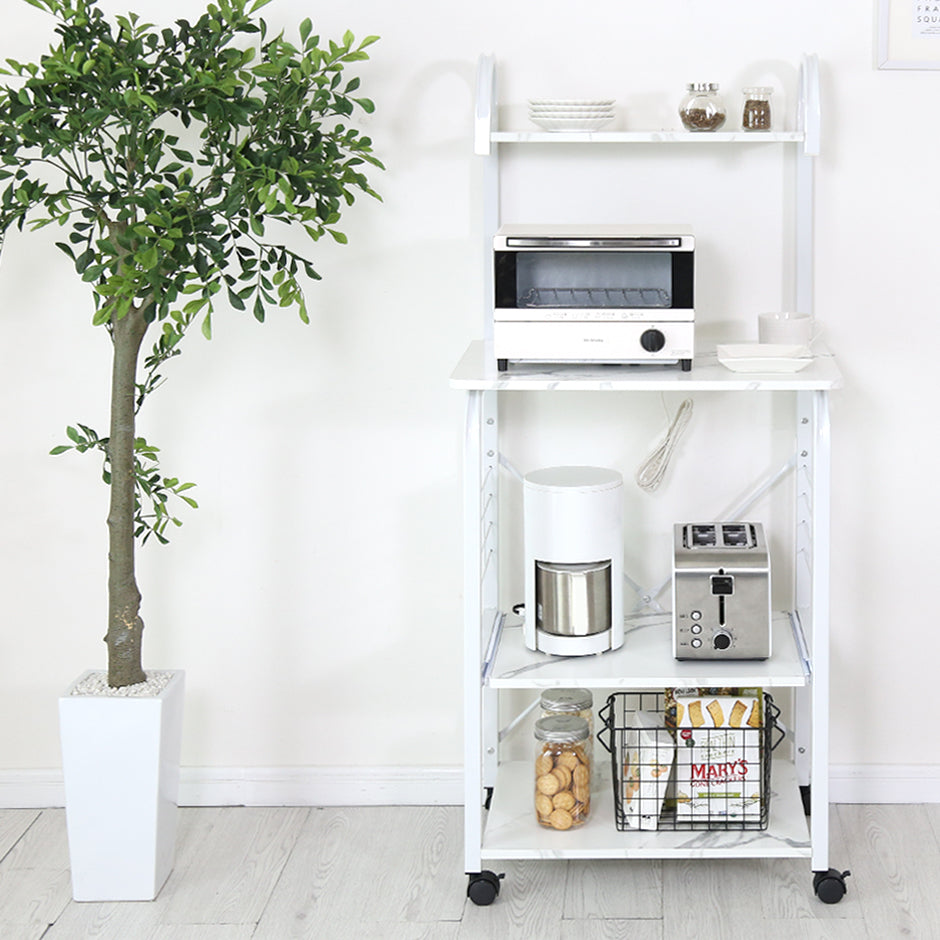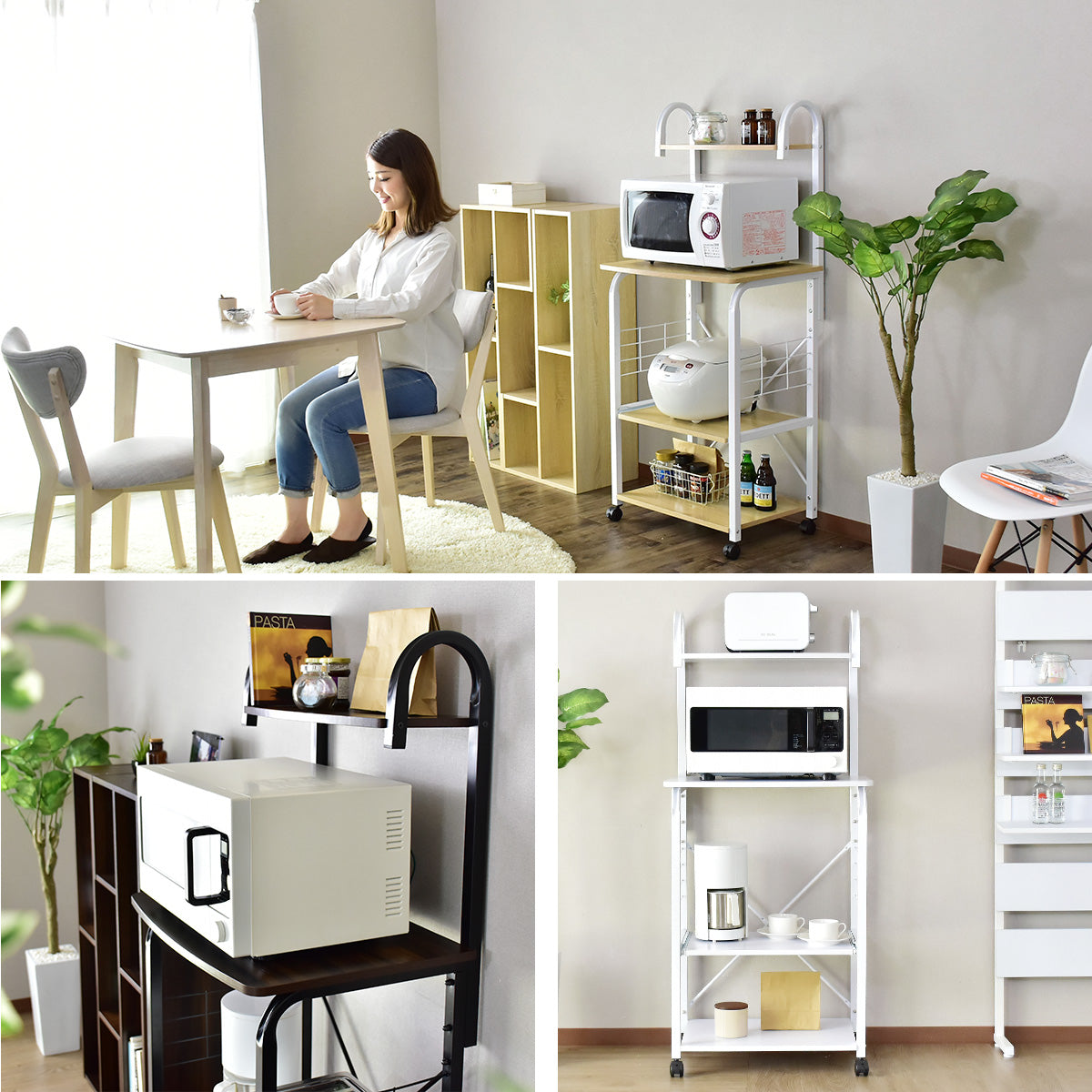 限られたスペースを最大限に活かし、機能性とデザイン性を兼ね備えたレンジワゴンが登場!一人暮らしのキッチンにぴったりのコンパクトサイズながら、電子レンジや炊飯器、ケトル、コーヒーメーカーなどのキッチン家電をスッキリ収納できます。上段にはオープンタイプのラックを備え、レンジ周りの調味料やキッチンツールの収納にも最適。さらに、下段にはスライド棚を搭載し、炊飯器の蒸気逃しやポットの給水もラクラク。2口コンセント付きで、複数の家電を同時に使用可能。移動に便利なキャスター付きで、お掃除や模様替えも簡単です。メラミン加工の木材を使用しているため、傷や汚れにも強く、長く愛用できるアイテム。新生活をスタートする方や、省スペースで機能的なキッチン収納をお探しの方におすすめのレンジワゴンです。