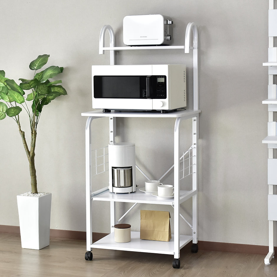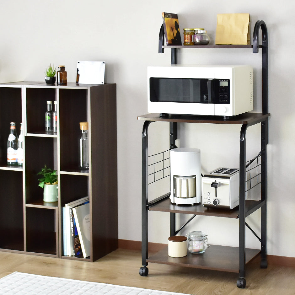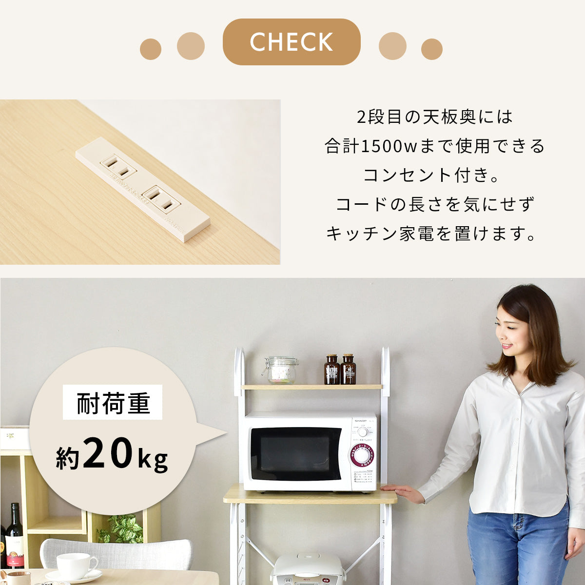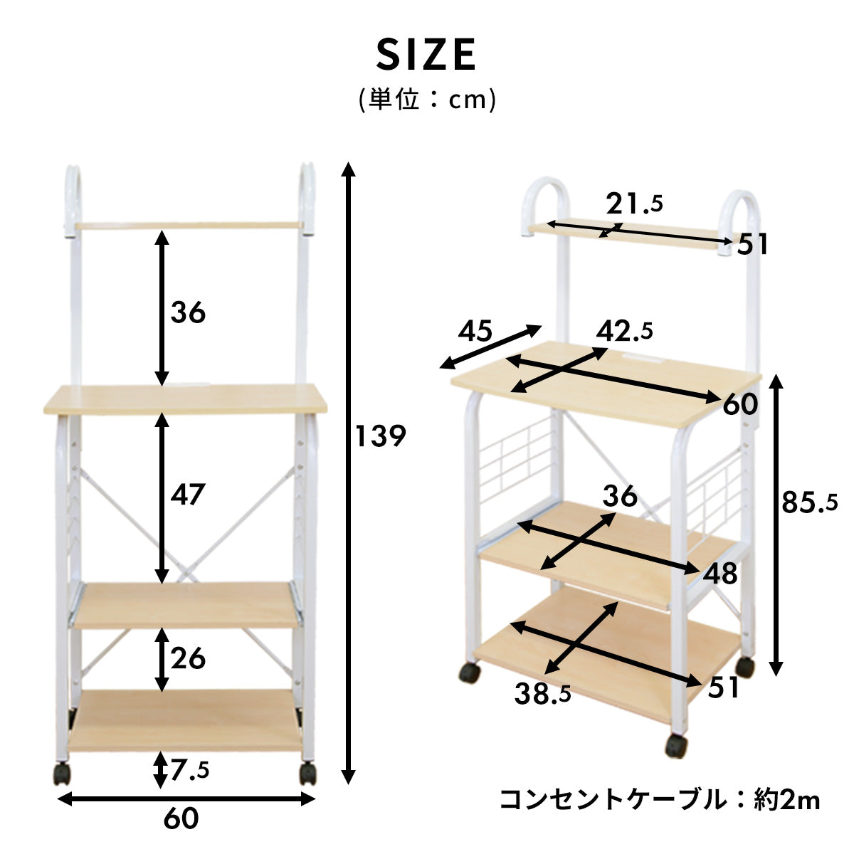 - 【収納力抜群】4段棚のキッチンラックです。炊飯器、ポットを置くのに便利なスライドテーブル・2口コンセント付きです。(コードの長さは約2mです)