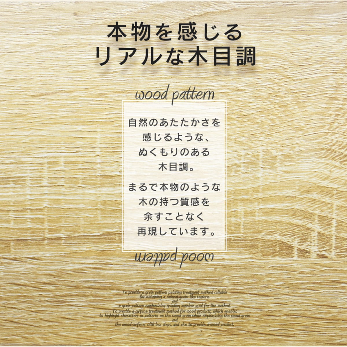 - 【天板メラミン加工】棚板は全てメラミン加工で仕上げました。水分・ヨゴレ・熱にも強いにも強く、汚れやすいキッチンでも安心です。