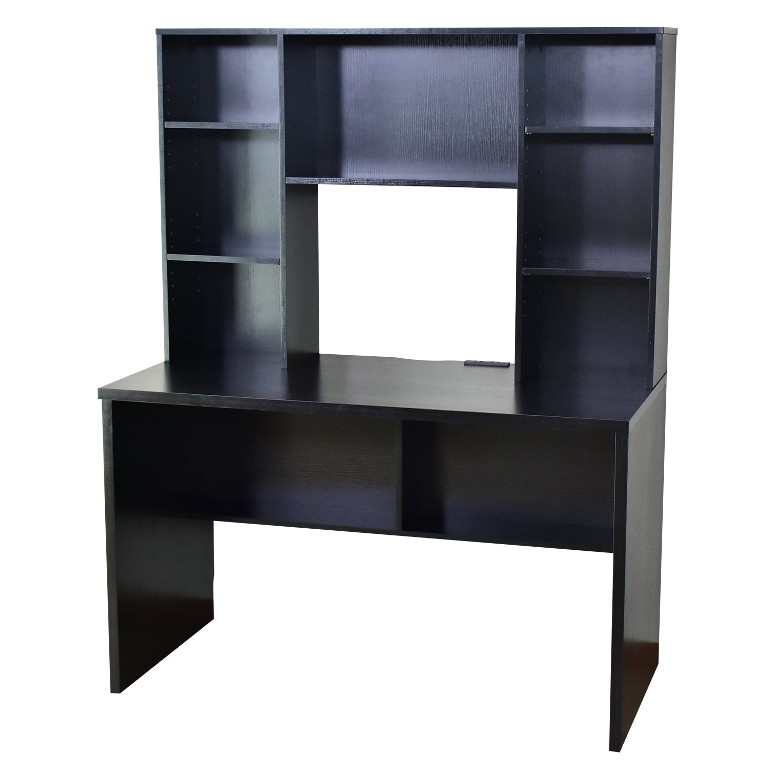 使い勝手抜群の広々天板。モニターも収まり広めの奥行で各作業に対応。また、電源・充電に使える2口コンセント付き。
