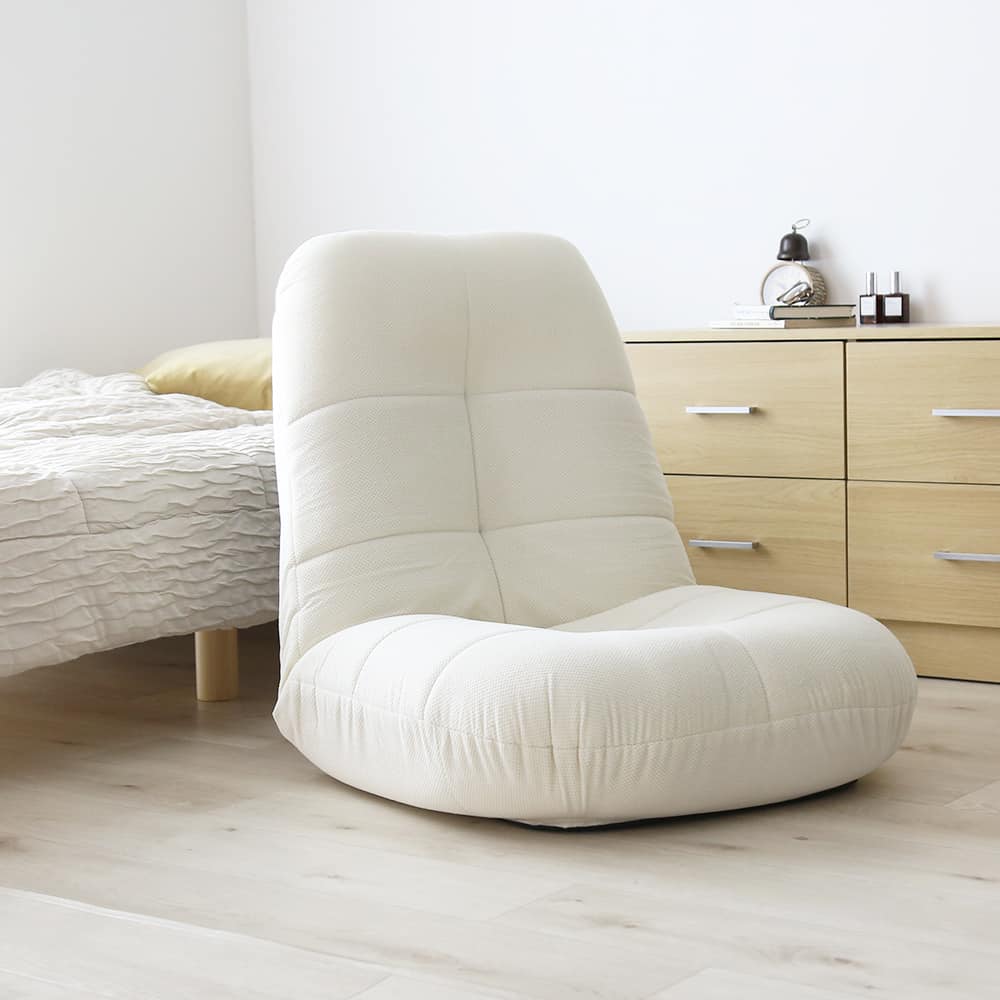 座面の中心部にほどよいくぼみを持たせた、なだらかなカーブが身体を優しく包み込みます。背中や腰が自然にフィットし、長時間座っていても疲れにくいのがポイント。さらに、しっかりと厚みのあるクッション材を使用しているため、底付き感がなく、ふっくらとした安心の座り心地。ナチュラルでおしゃれなデザインと、快適性を兼ね備えた設計で、リビングや私室の雰囲気をワンランクアップさせます。