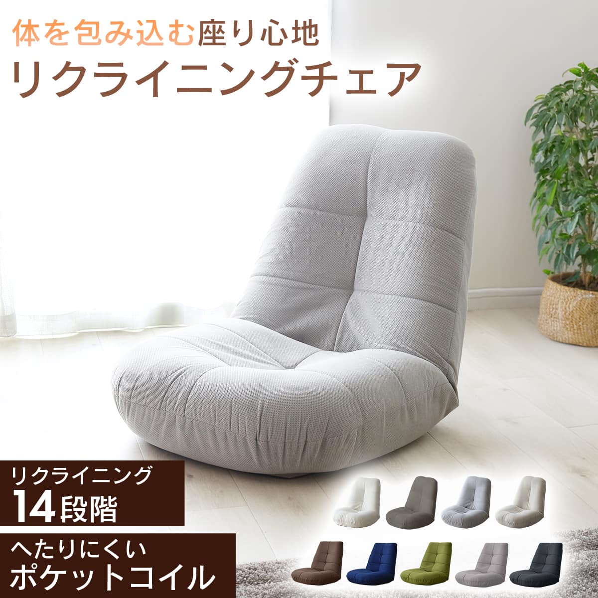座椅子 リクライニング 14段階 ソファー 1人掛け ポケットコイル 厚さ17cm ラッコ