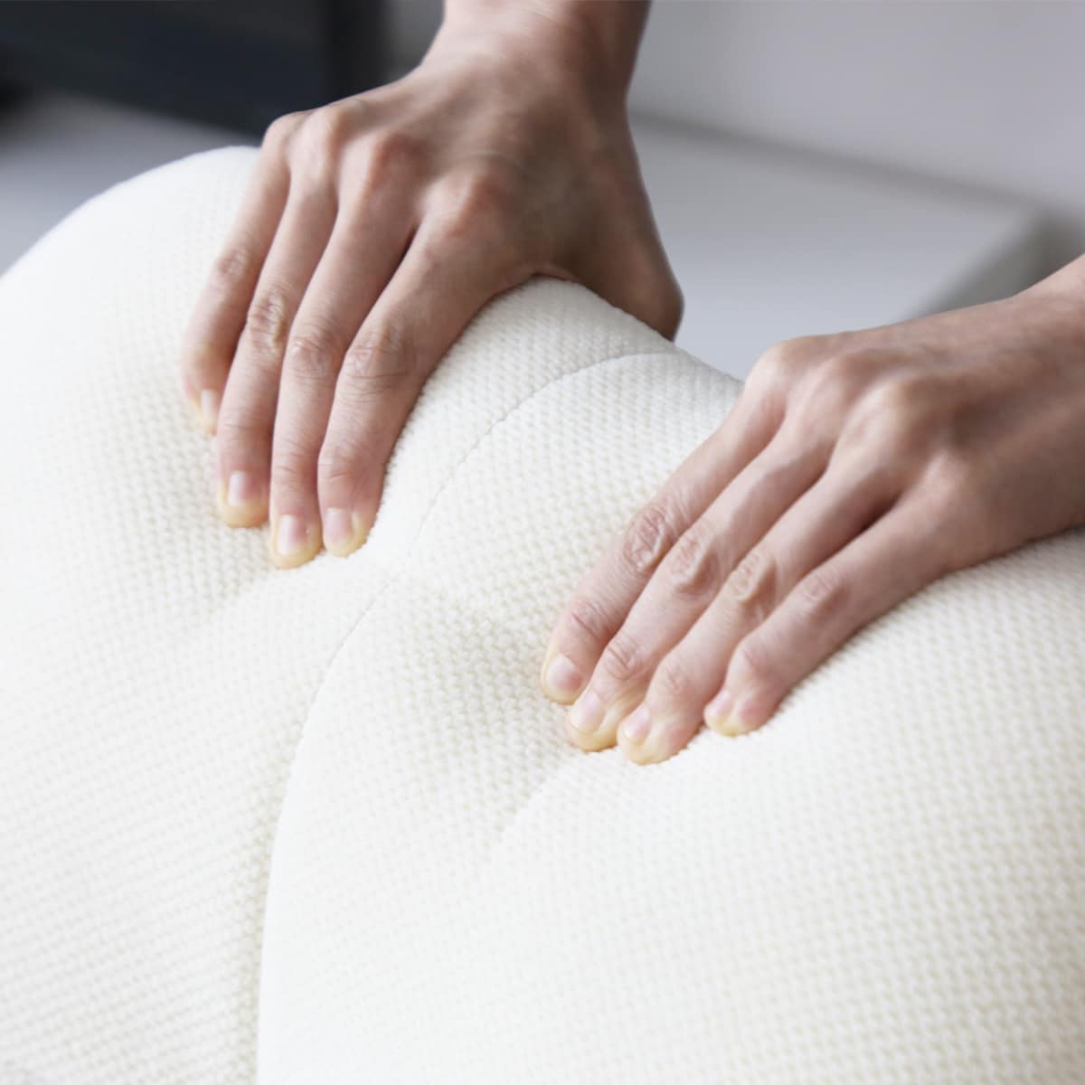 座面には高級マットレスにも使用されるポケットコイルを採用。コイルが一つひとつ独立して身体を支えるため、体圧を分散し、長時間座ってもお尻や腰が痛くなりにくい構造です。へたりにくく、使うたびにしっかりとした弾力が戻るのが特長。ふわふわなのに安定感があり、沈み込みすぎない理想のバランスを実現しました。毎日使う椅子だからこそ、快適さと耐久性の両立にこだわった一脚です。