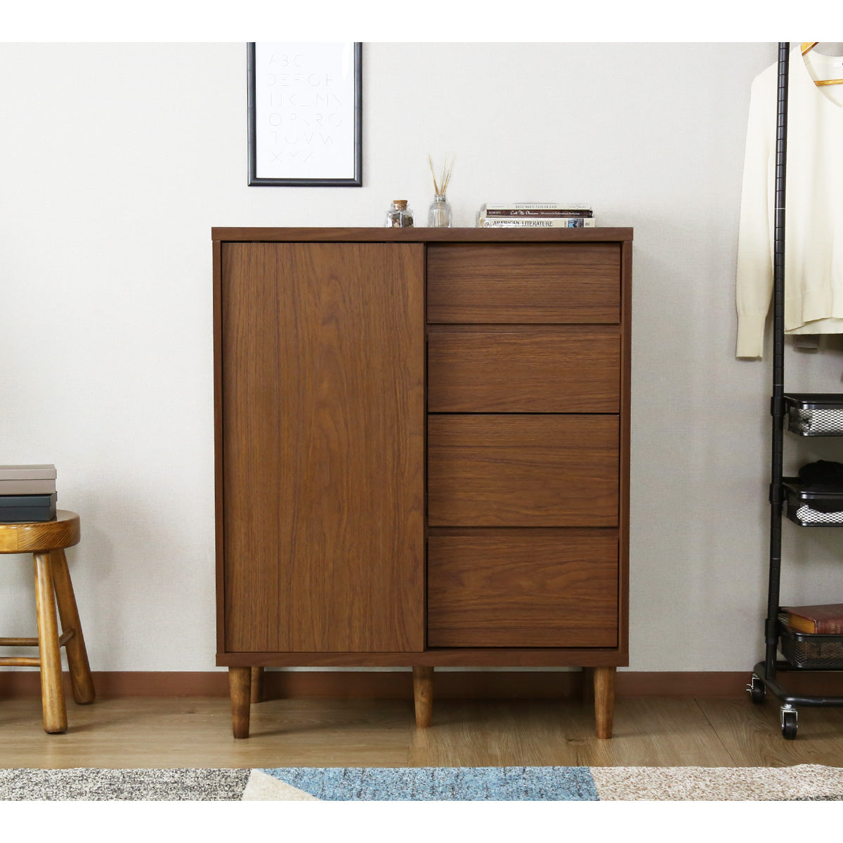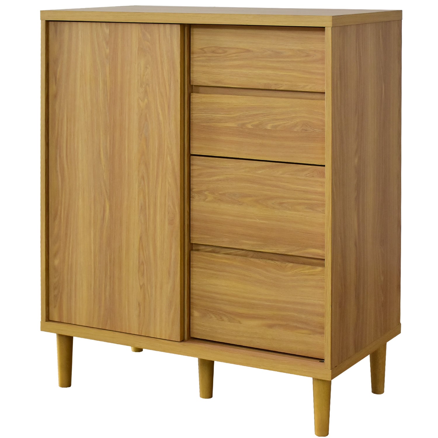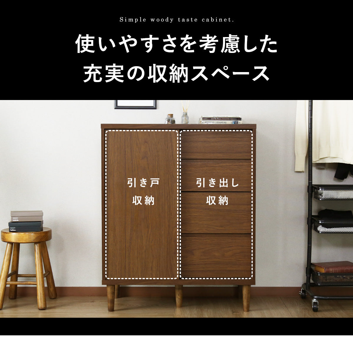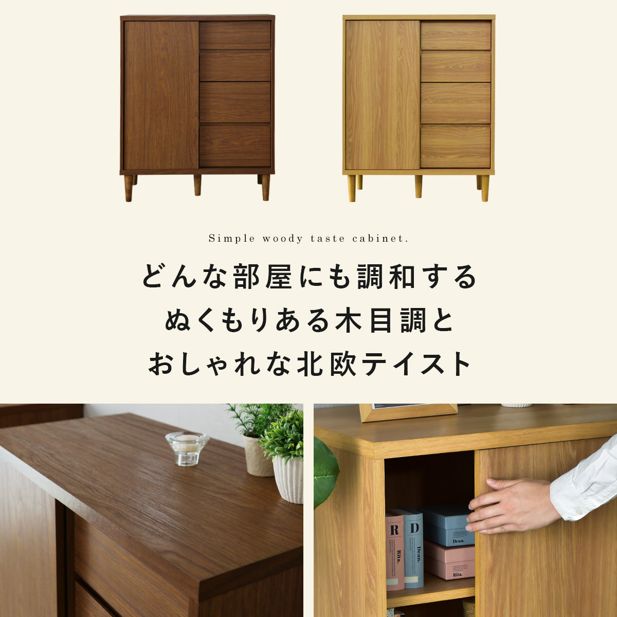 - どんな部屋にも調和するぬくもりある木目調とおしゃれな北欧テイストキャビネット