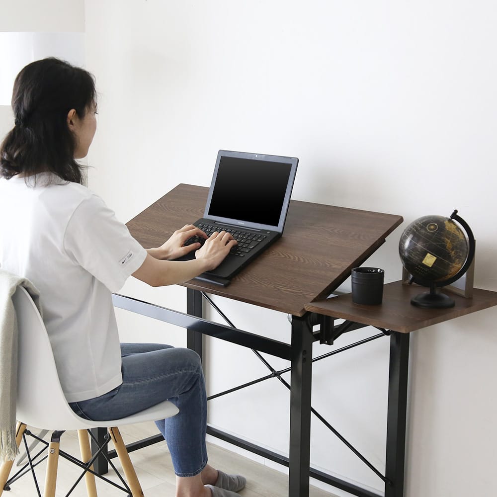 水平な机で作業を続けると、どうしても前かがみの姿勢になり、肩や首、腰に負担がかかりがちです。本デスクは天板角度を調整できるため、視線と作業面の距離が近くなり、自然な姿勢を保てます。その結果、長時間の作業でも疲れにくく、集中力を維持しやすいのがメリットです。家庭学習や仕事はもちろん、クリエイティブ作業や読書にも適しており、体への負担を減らしながら快適に作業できる環境を整えます。健康的な姿勢をサポートする、機能性に優れたデスクです。