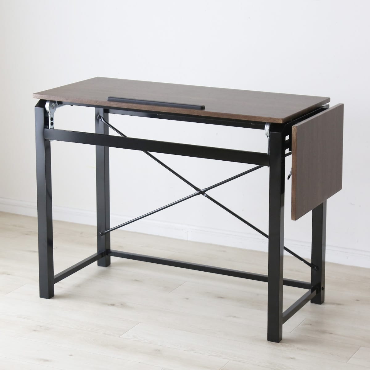 本製品の大きな特徴は、4段階で角度調整が可能な天板です。水平状態では一般的なパソコンデスクやワークデスクとして使え、天板を傾斜させればイラストやデザイン作業、楽譜を広げての演奏にも快適に対応できます。幅90cmの広さがあるため、ノートパソコンと資料を同時に置いたり、教科書やノートを並べたりすることも可能です。天板にはずり落ち防止ストッパーが備わっており、傾斜状態でも安心して使える設計。勉強机としても、クリエイターデスクとしても活躍し、幅広い用途に対応できる使いやすさが魅力です。