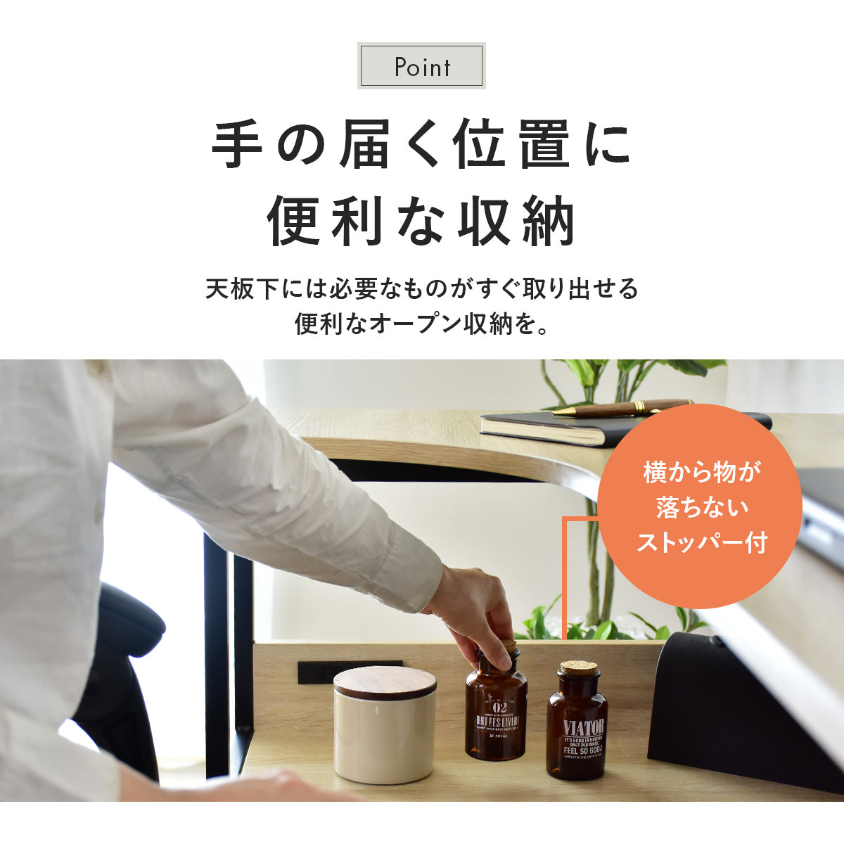 天板の幅は140cmの広い作業スペースを確保、モニターも余裕で2個置きできます。