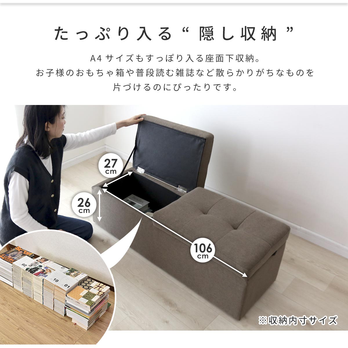 【幅117】収納スツール ツインベンチ