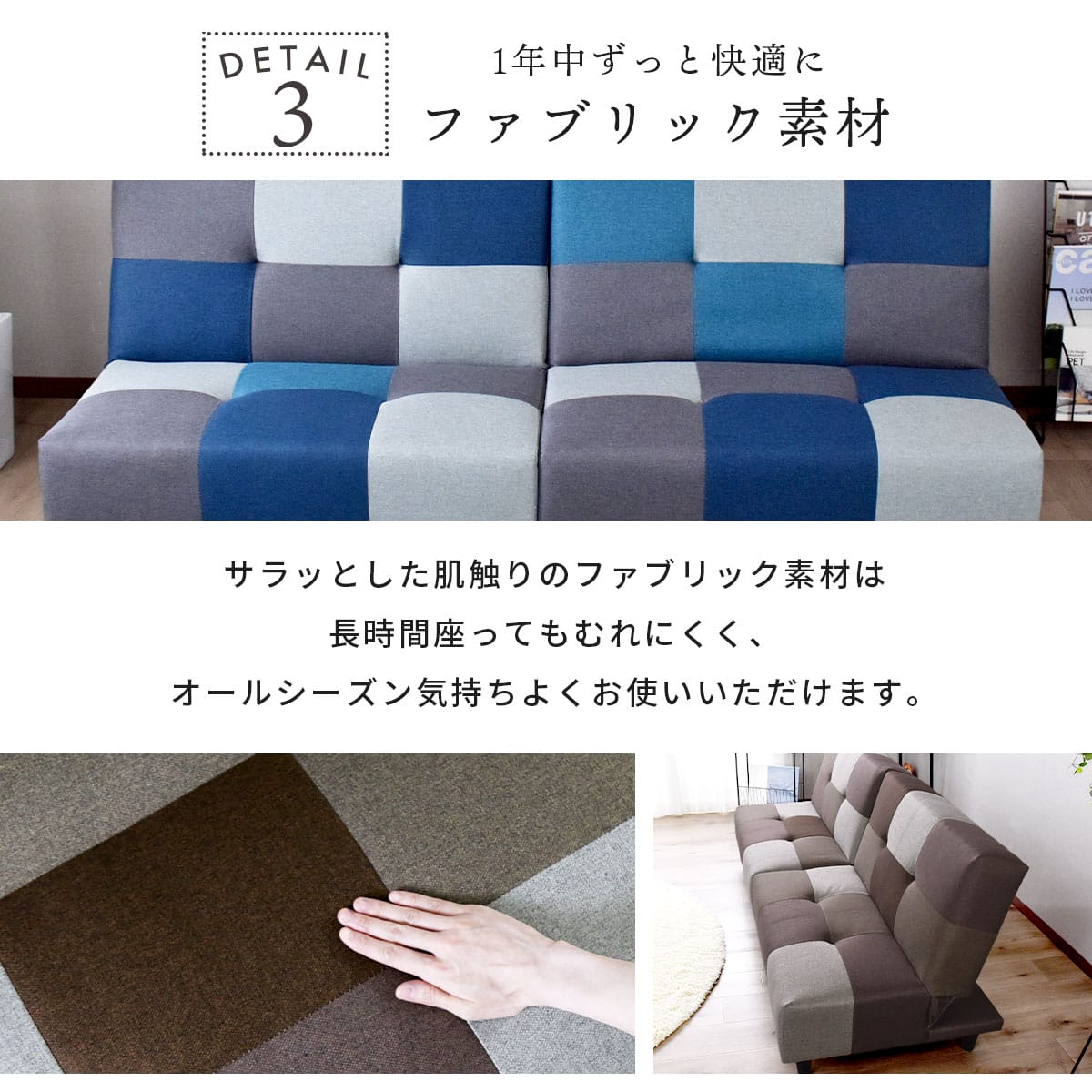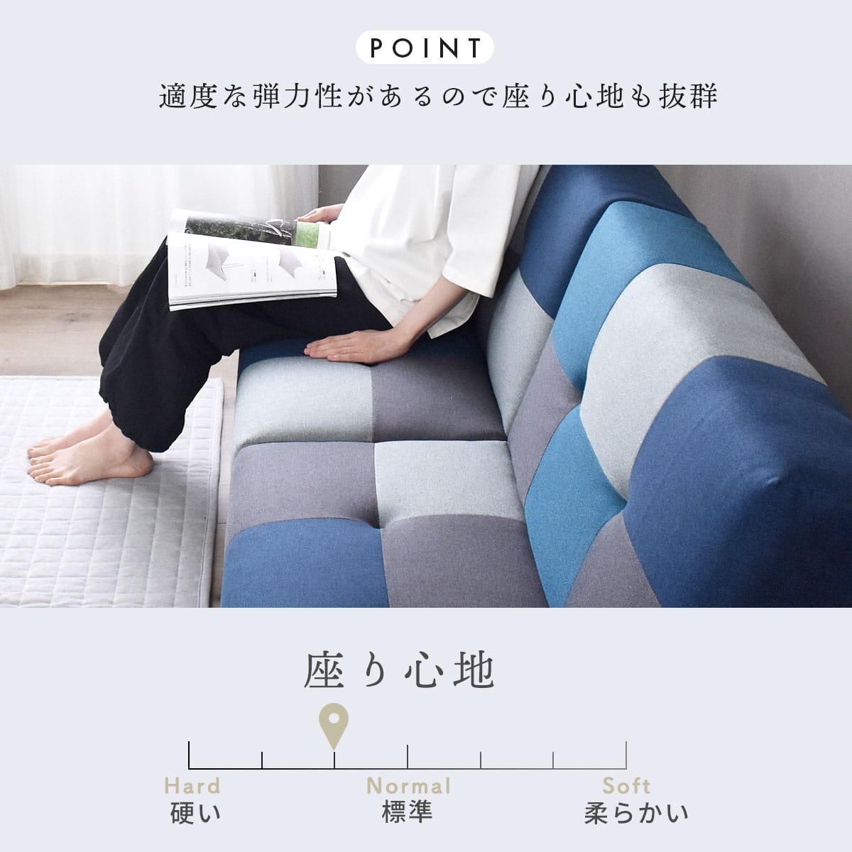 お部屋の雰囲気を一気に華やかにしてくれる存在感抜群のパッチワークデザインソファ。遊び心のあるデザインながら、派手すぎない落ち着いたトーンのカラー配色で幅広いインテリアに馴染みます。お好みやお部屋のテイストに合わせて選べる4色展開でリビングのアクセントやワンルームの主役として、置くだけでセンスある空間を演出します。