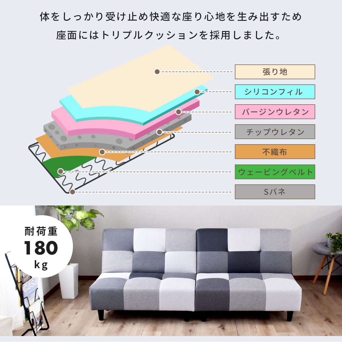 存在感あるパッチワークデザインが魅力のソファ。お部屋のアクセントになり、インテリアの印象をグッと引き締めます。レトロやモダン、ナチュラルなど幅広いテイストに調和し、ワンランク上の空間を演出。1点ごとに異なる配置で特別感があり、明るい配色は広がりを演出、落ち着いた色合いはシックな空間を叶えます。ファッション感覚でインテリアを楽しみたい方にぴったりの、おしゃれなデザインソファです。