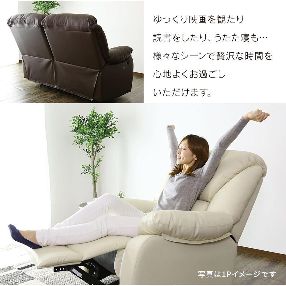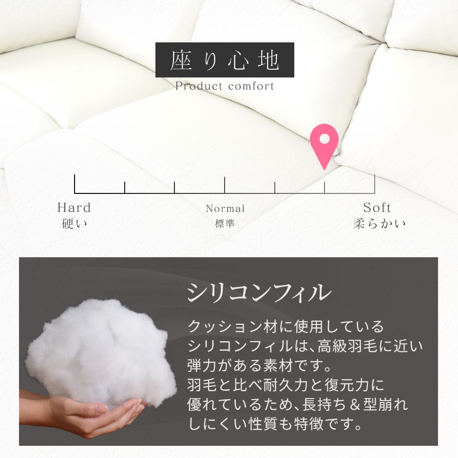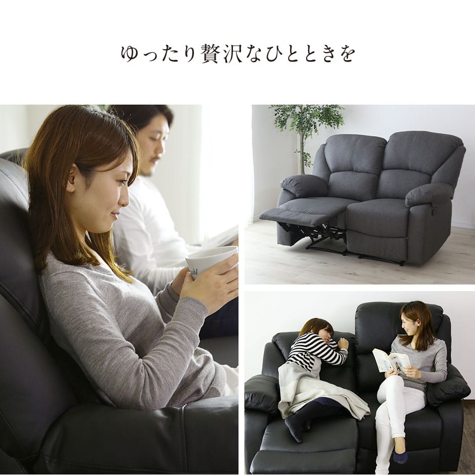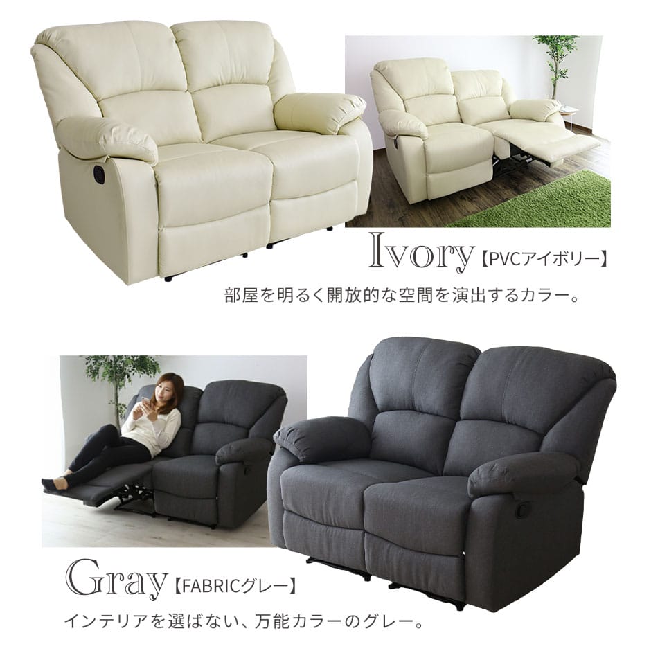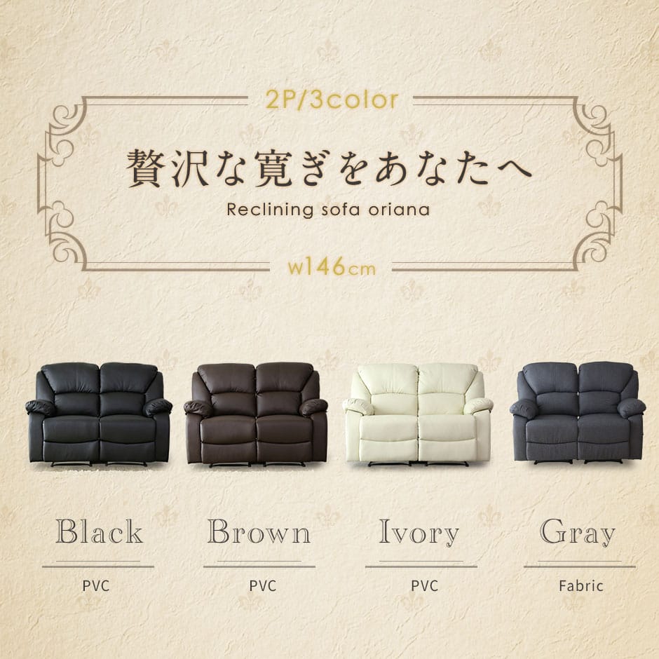 素材は高級感のあるPUレザーと、やわらかな風合いのファブリックの2種類をご用意。カラーはブラック・ブラウン・アイボリー・グレーの全4色展開で、お部屋のテイストに合わせて選べます。見た目と実用性を兼ね備え、贈り物としても喜ばれるソファです。