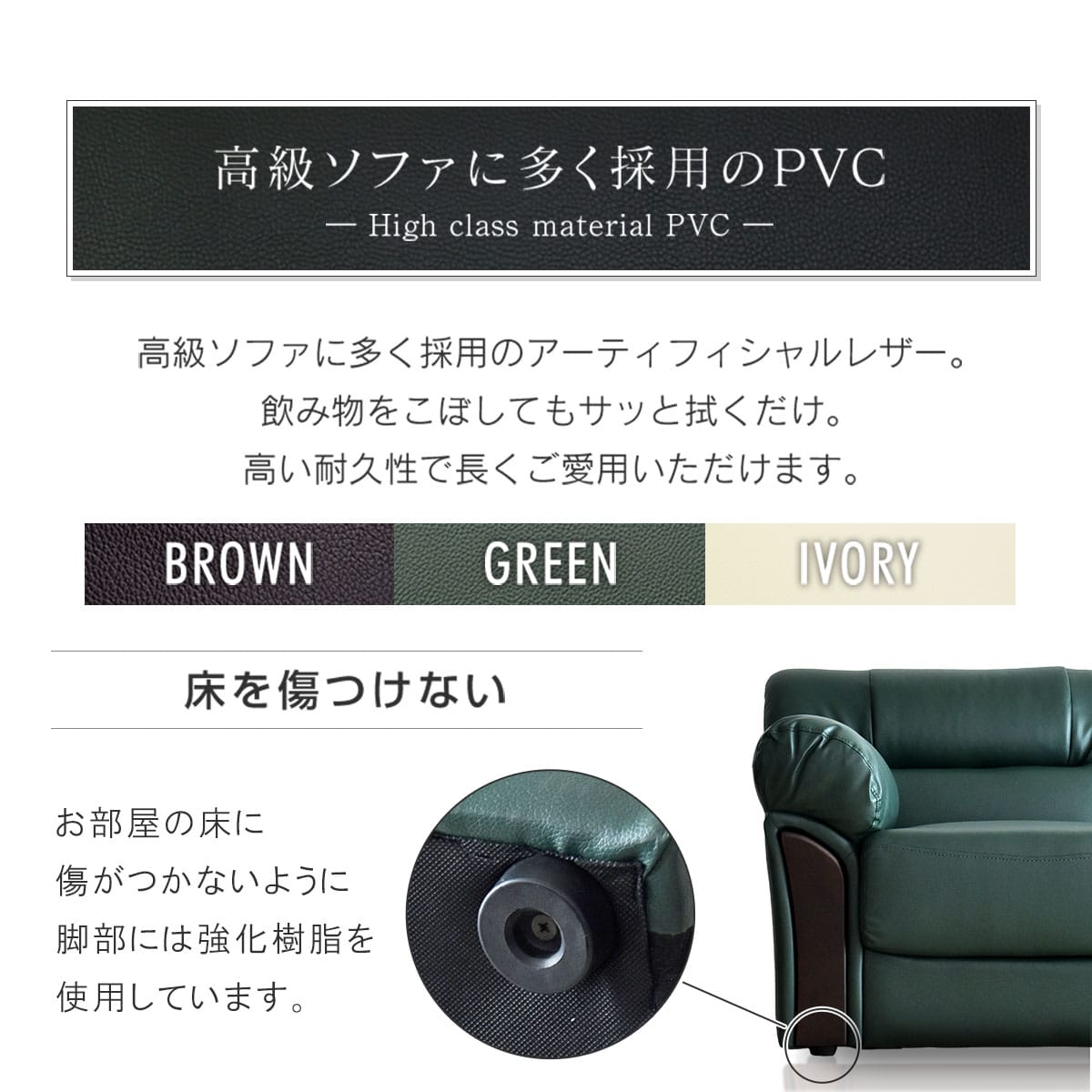 素 材 | 【表面材】 合成皮革 【構造部材】 天然木・合板・ウレタンフォーム・綿・不織布・ウェイビングベルト Sバネ(連結式鋼製組バネ)・ポリプロピレン |