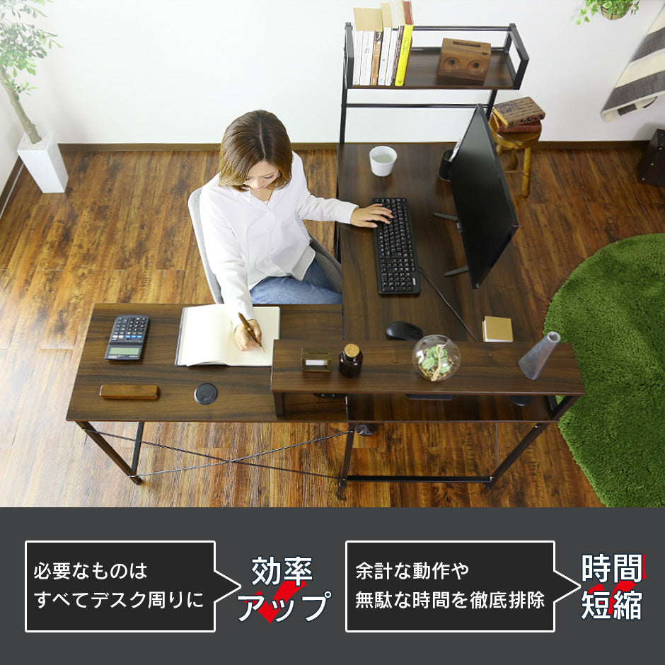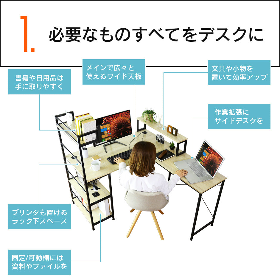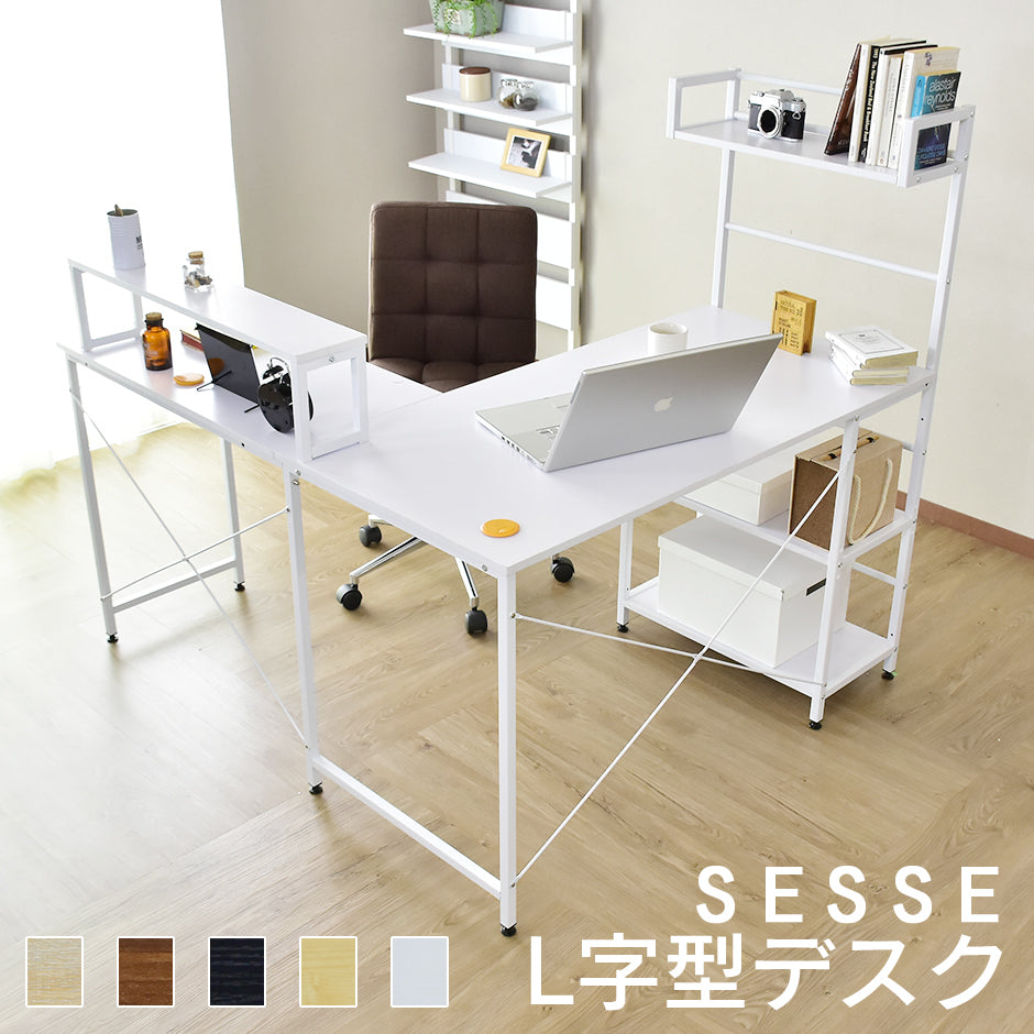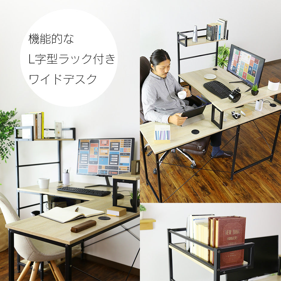 L字型デスク「セス」は、機能性とスタイリッシュなデザインを兼ね備えたワークデスクです。幅140cmの広々としたワイドに、L字型のデザインがいつもの作業を効率的にしてくれます。机の上には収納ラックが付いており、文房具や小物類などをディスプレイできます。また足元にはA4サイズのファイルも収納できる棚付き。いつも必要なものをすぐ取り出せるのもポイントのひとつです。天板の木目調がお部屋を温かい雰囲気にし、シンプルでモダンなデザインがお部屋に馴染みます。ゲーミングデスクや学習机としても最適で、幅広い用途にお使いいただけます!