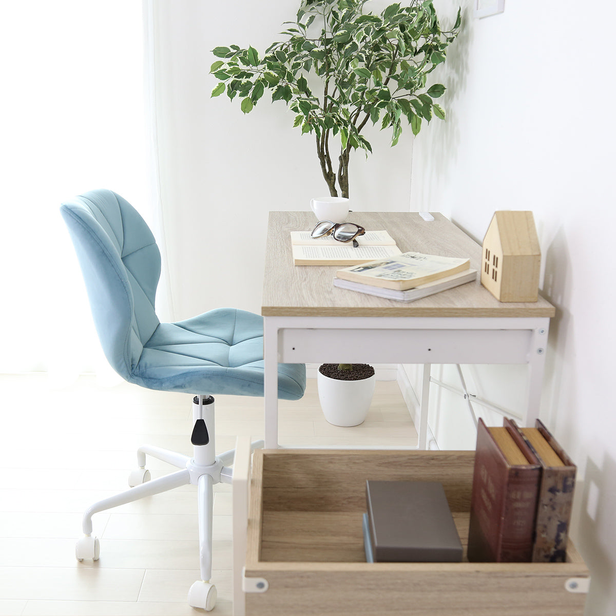 くすみカラーのチェアは、深みのある色調によって、部屋全体に穏やかで落ち着いた雰囲気をもたらします。明るすぎず、暗すぎない絶妙な色合いは、リラックスしながら作業を進めたいときに最適です。
