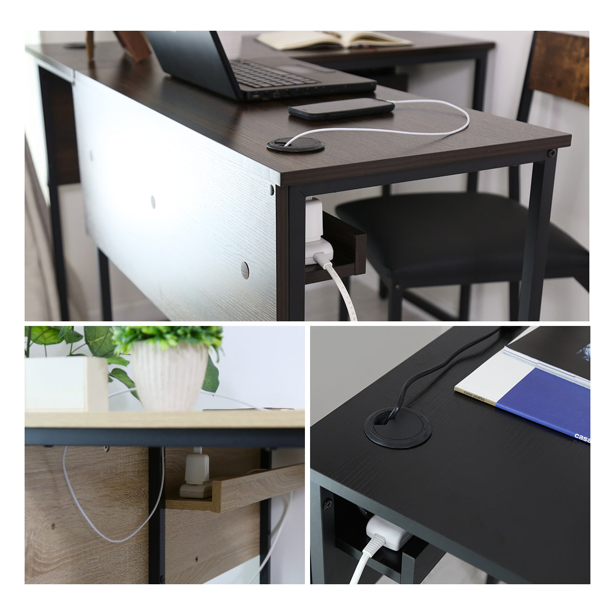 オリロンにはコードを隠す内棚と配線キャップがそれぞれ2か所設置されています。これにより、配線コードが見えないスッキリとしたデスク環境を維持できます。さらに、配線キャップは天板中央ではなくあえて端に寄せることで、ディスプレイを置く際に干渉しないよう配慮した設計となっています。