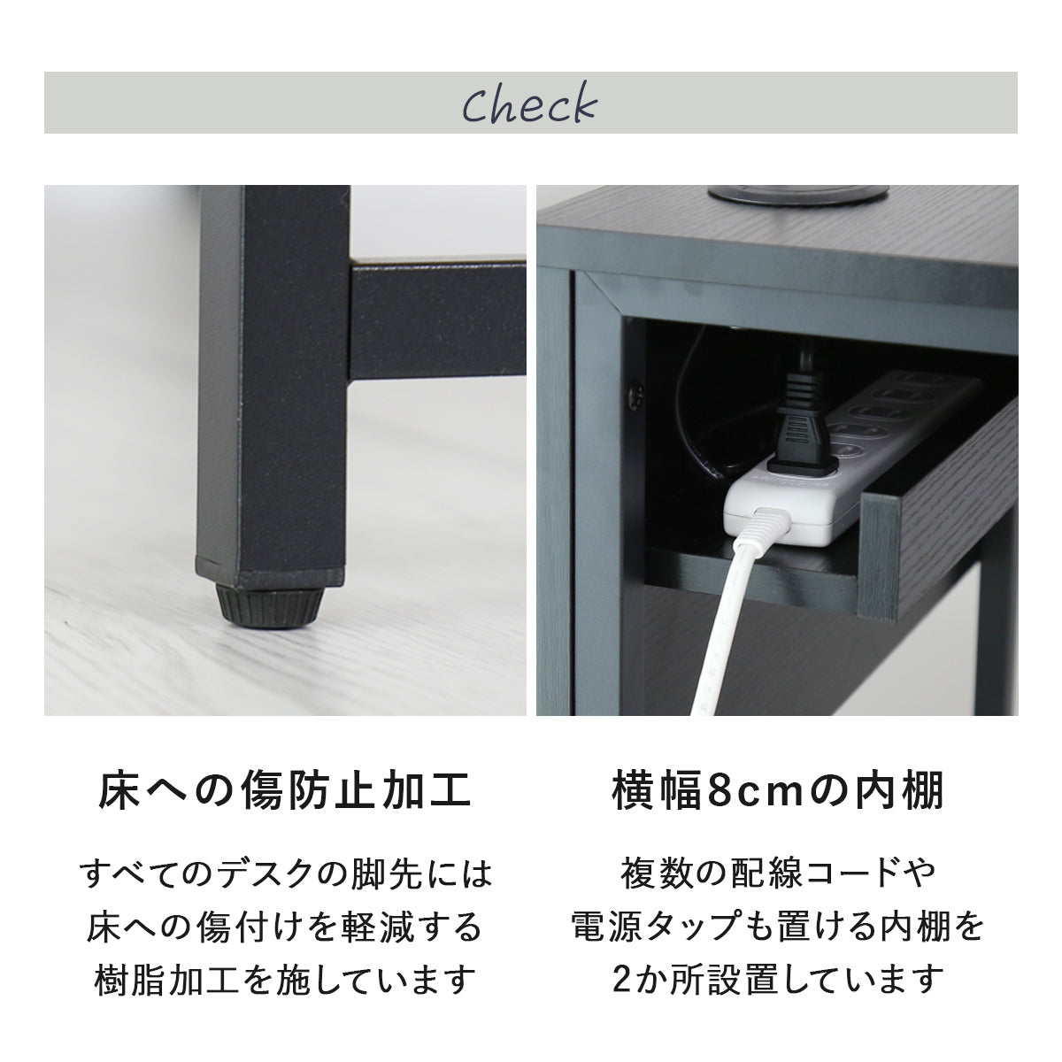 足元のオープンスペースを活用してチェストやラックを設置してもOK!デスク周りに収納が欲しい方にも安心の仕様です。
