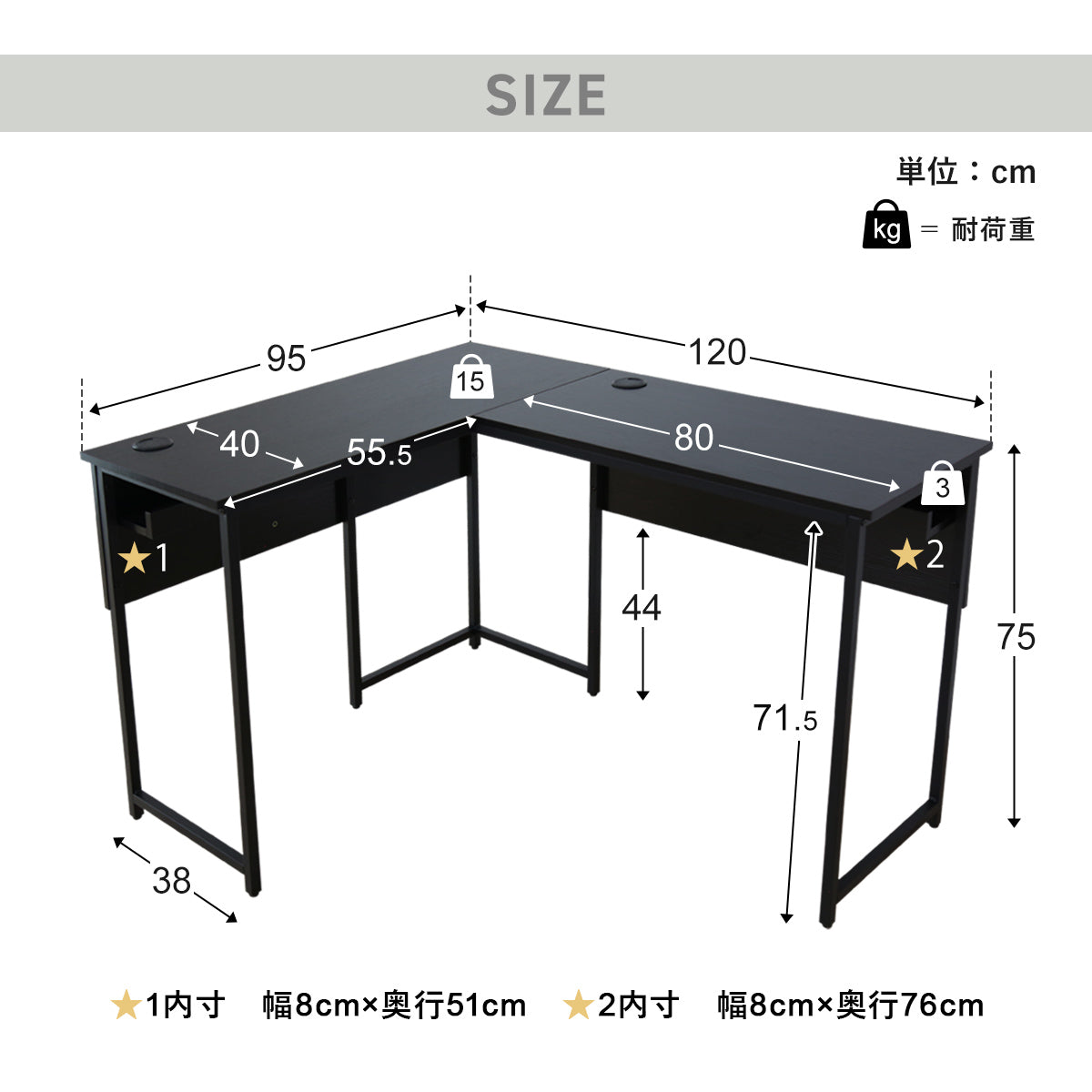 ひと回りコンパクトなサイズ感が特徴のL字型デスク「オリロン」。横幅はしっかり120cmあるのに奥行が95cmとスリムなので、限られたスペースでも広々とした作業環境が確保できます。デスクトップ・ノートパソコン・ノート等を広げても効率良く作業でき、欲しいものにもすぐに手が届く絶妙な距離感です。