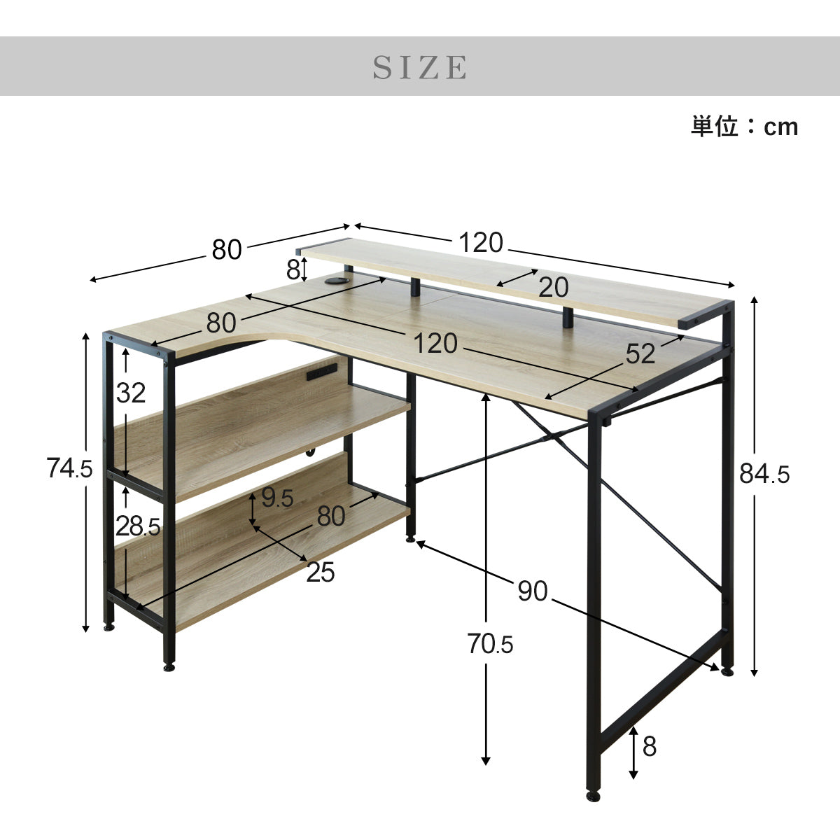 モニターの位置を高めてリラックスすることで画面が下がって作業することができます。また、上の棚の下にキーボードやマウスなどの小物を収納することができ