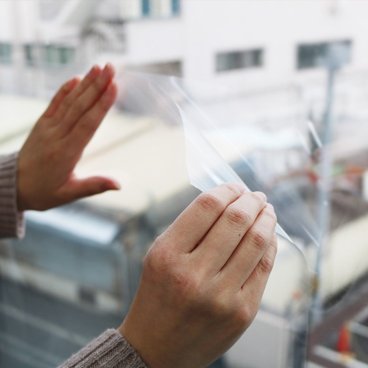 景観変わらずに遮熱、UVカットする透明のシートです。