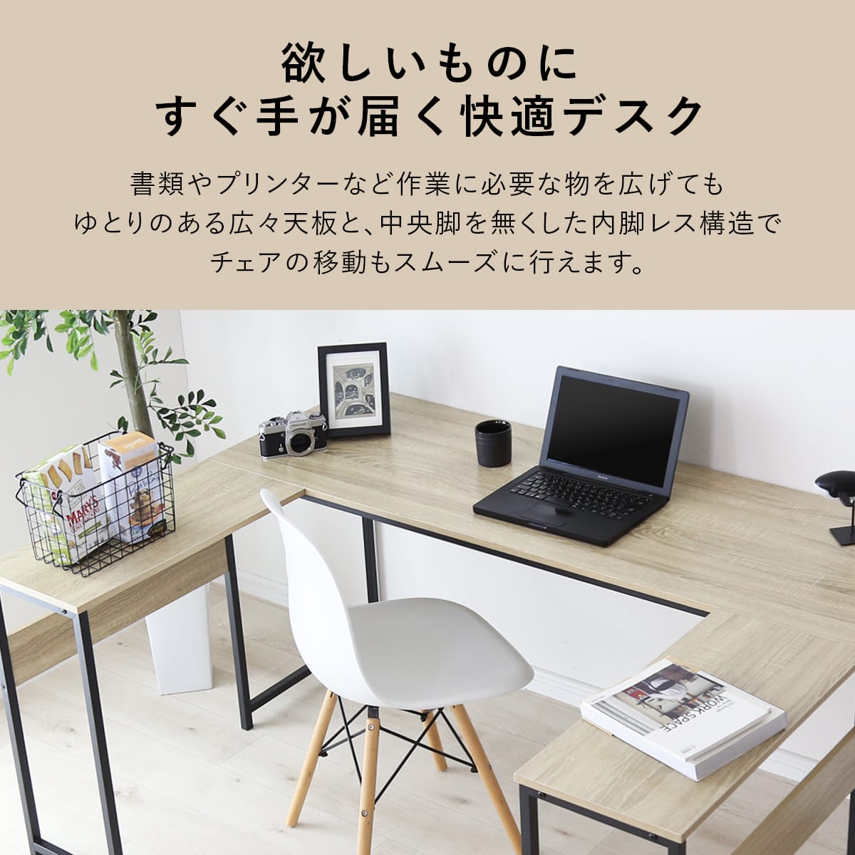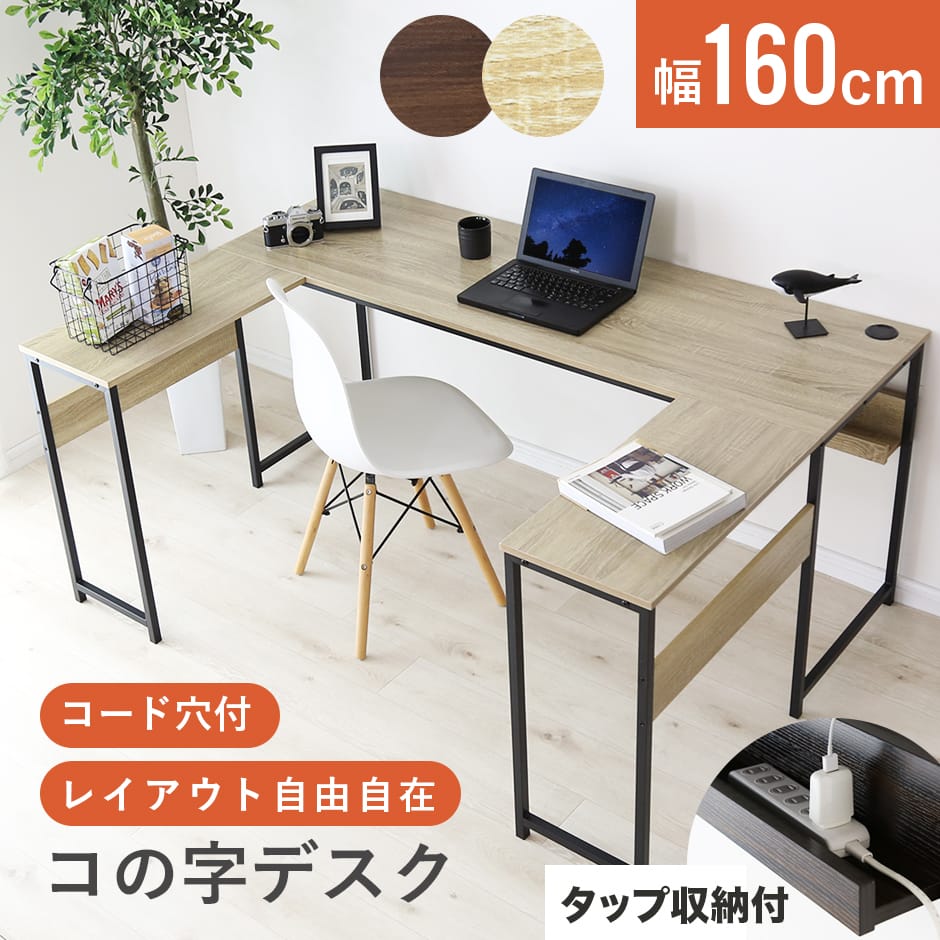 広々としたコの字デザインで、作業効率を高めながらも、どんな空間にも美しく馴染む設計が魅力の多機能デスクです。オフィスやリモートワークスペース、ゲーミング環境まで、さまざまなニーズに対応できるこのデスクは、コード穴2つやタップ収納など、充実した機能で作業環境を快適にサポートします。内脚レス構造により、足元を広く保てるため、ストレスフリーで快適な作業が可能。取り外し可能なサブデスクがセットになっており、レイアウトを自由に変えられるので、スペースを最大限に活用できます。