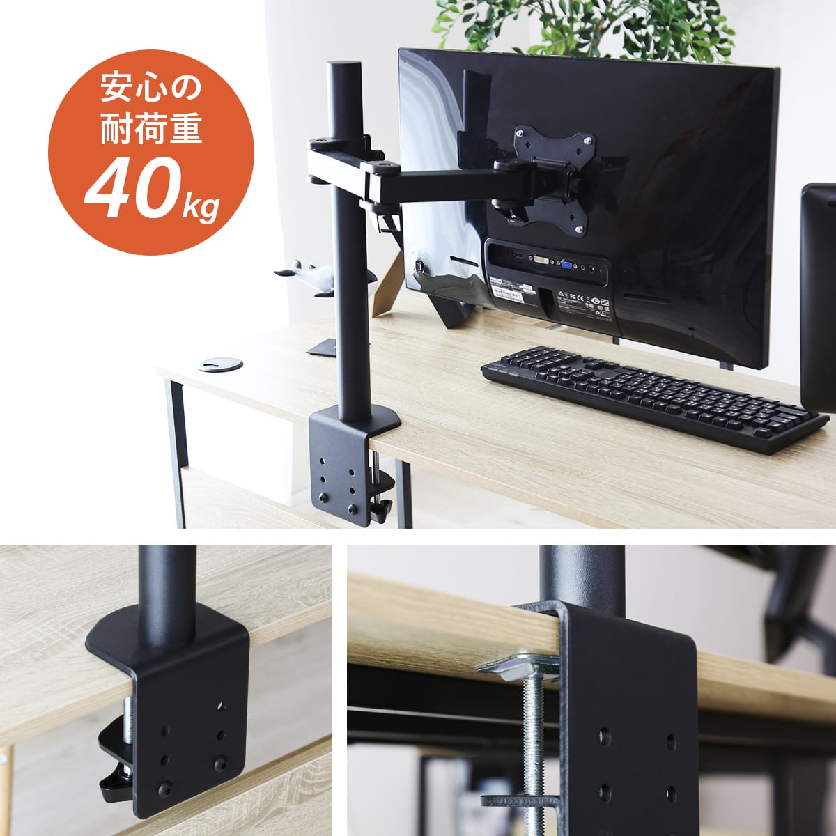 | 耐荷重 | メインデスク:約40kg サブデスク:約20kg タップ収納:約2kg |