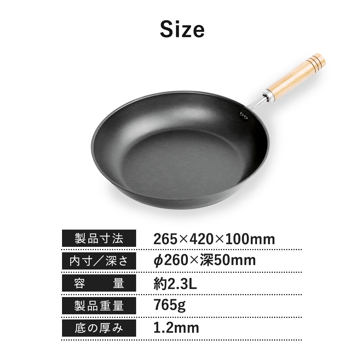 材質 | 本体:鉄 ハンドル:天然木 表面加工:クリア塗装 ※ナノエンボス加工済 |