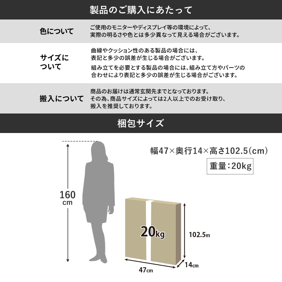 | 梱包サイズ | 幅101.9×奥行46.8×高さ12(cm) |
